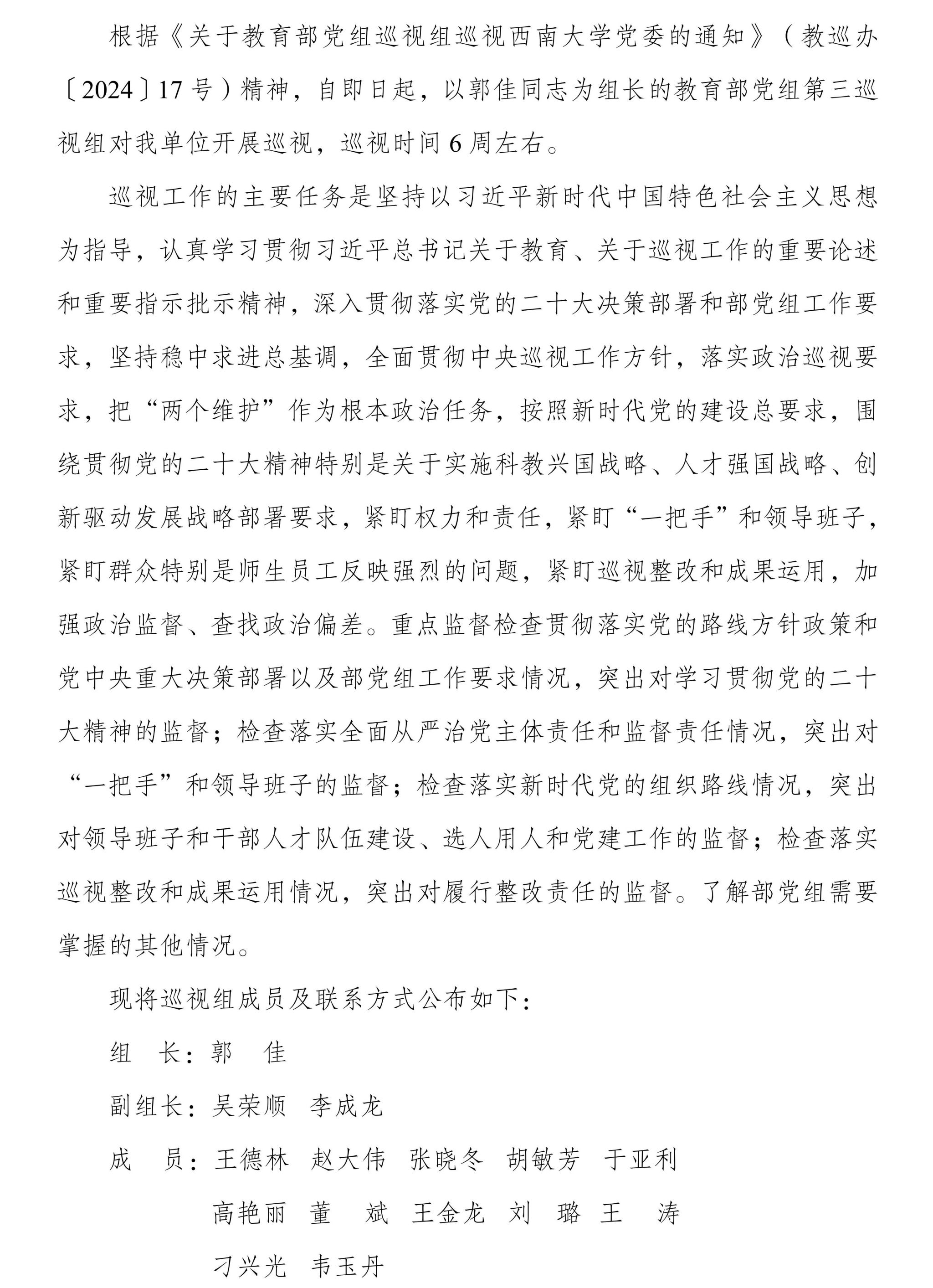 关于教育部党组第三巡视组巡视Beat365中文官方网站党委的公告