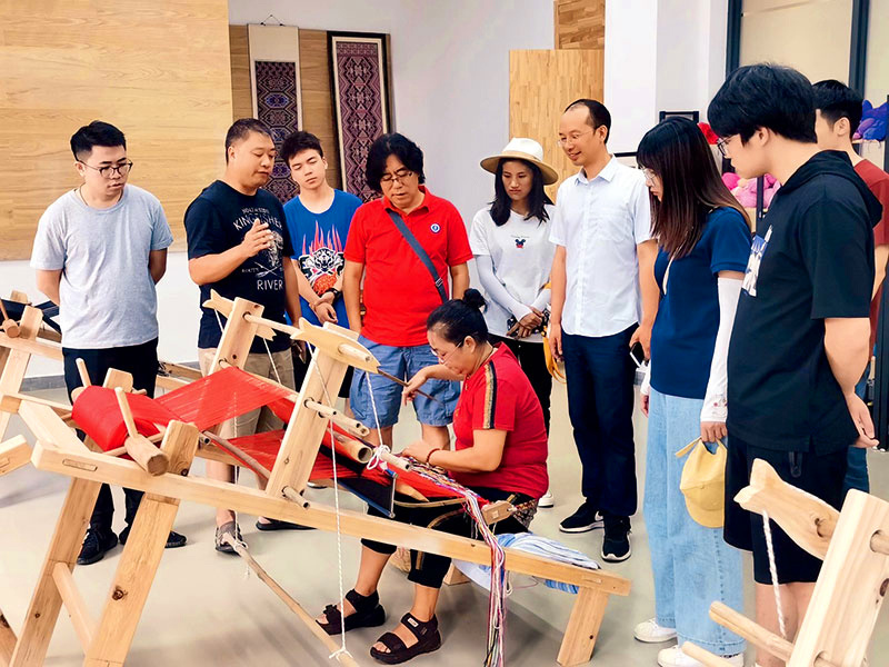 王志章(左四)在武陵山片区非物质文化遗产传承车间进行调研