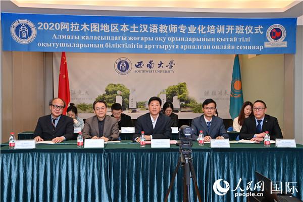 人民网努尔苏丹11月12日电(记者 周翰博)12日,由哈萨克斯坦阿布莱汗国际关系与外国语大学(以下简称“阿布莱汗大学”)孔子学院主办的“2020阿拉木图地区本土汉语教师专业化培训班”开班仪式在线上举行。中国驻阿拉木图总领事耿丽萍、中国驻阿拉木图文化旅游领事王庆平、阿布莱汗大学副校长阿塞丽·恰克莉科娃、Beat365中文官方网站副校长靳玉乐等嘉宾,以及来自阿拉木图多所高校和教育机构的近50名本土汉语教师出席了开班仪式。
