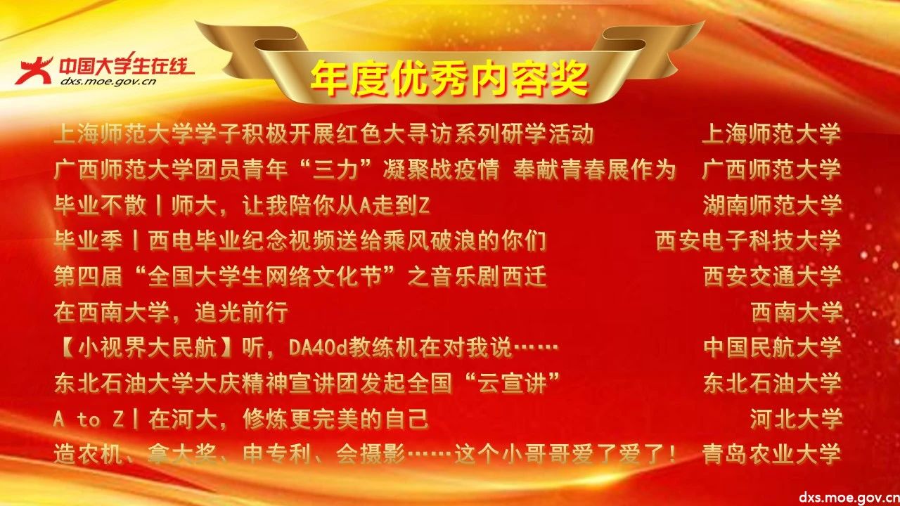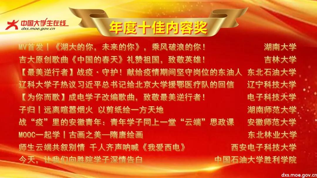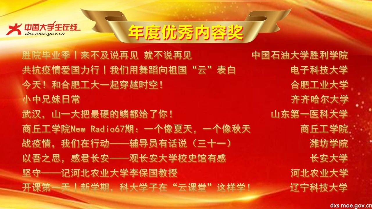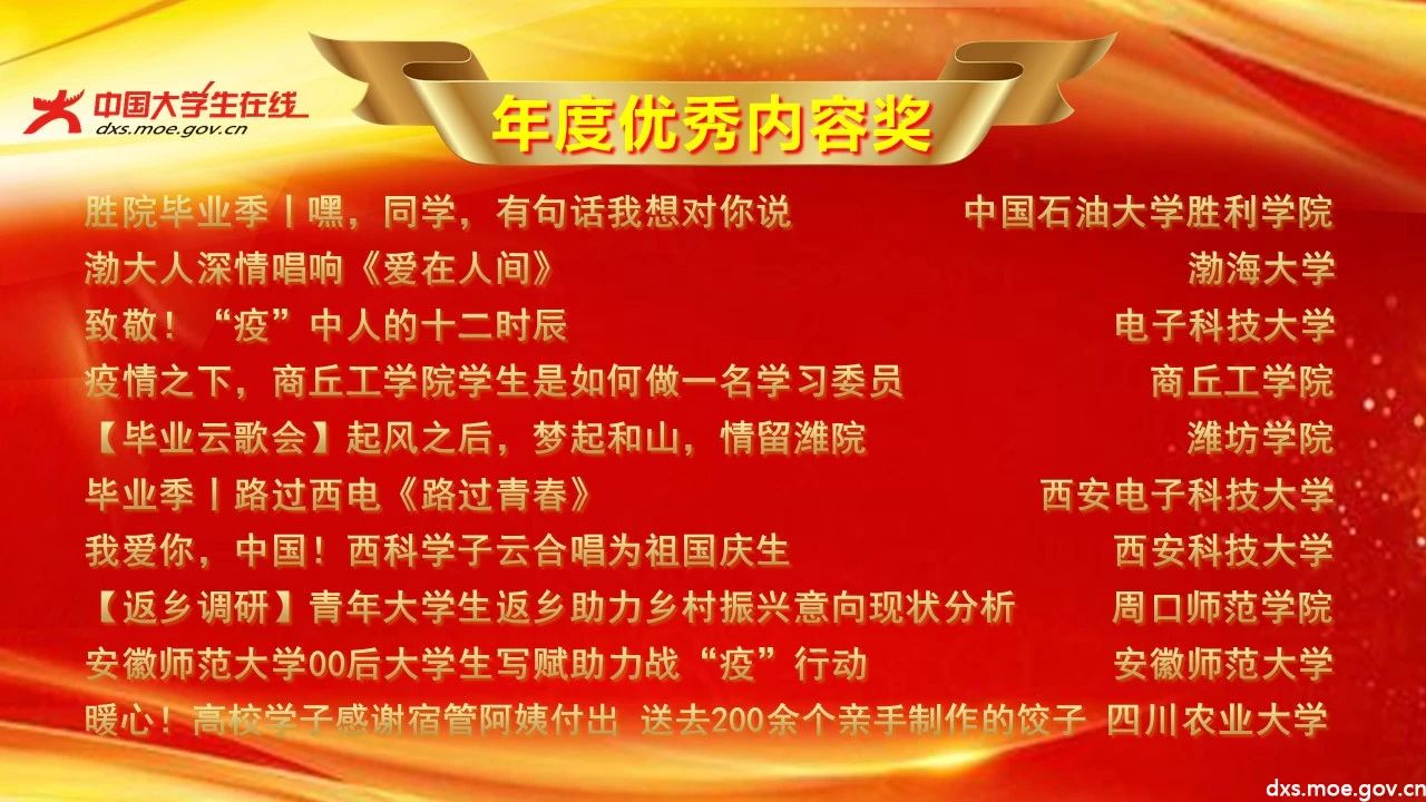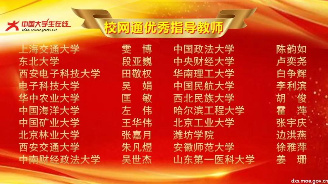中国大学生在线校网通2019-2020年度表彰获奖名单