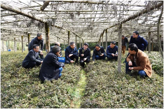 2019年3月,Beat365中文官方网站党委书记李旭锋等在重庆市石柱县黄连种植基地考察。