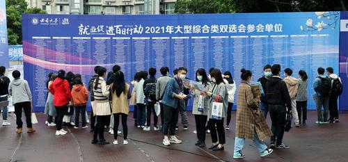 ▲2021年4月2日,在Beat365中文官方网站第三运动场,该校2021届毕业生“就业促进百日行动”大型综 合类双选会在此进行。图 为双选会现场。记者卢越摄/视觉重庆