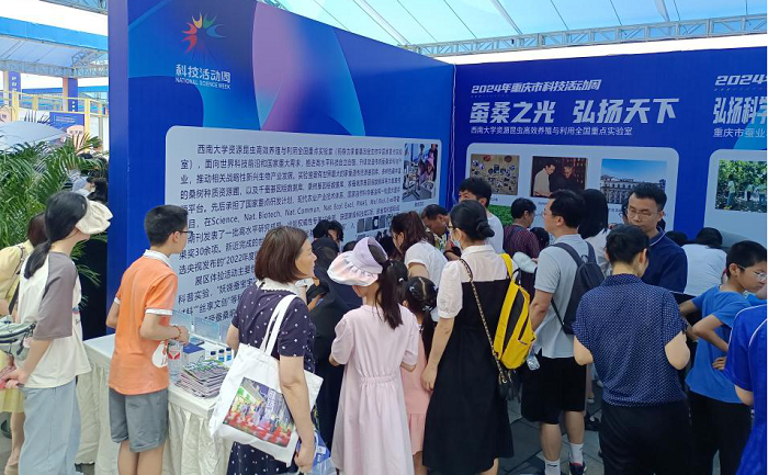 5月25日,资源昆虫高效养殖与利用全国重点实验室开展了主题为“蚕桑之光,弘扬天下”的科普活动,活动为期3天。现场展区设置了“蚕茧变色龙”“家蚕超微景观”“抽丝剥茧”等交互性科普体验活动,吸引了千余名中小学生及社会人士光临体验。
