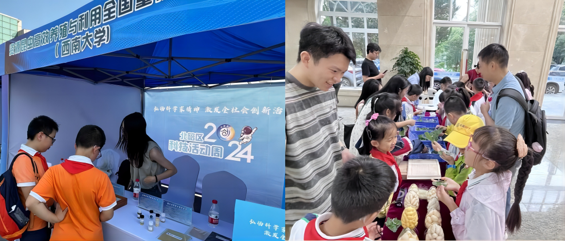 2024年5月25至27日,为深入贯彻落实习近平总书记关于科普工作的重要指示精神,积极普及科学技术知识,弘扬科学精神,传播科学思想,提升全民素质,营造崇尚科学风尚,重庆市2024年科技活动周以“弘扬科学家精神 激发全社会创新活力”为主题在创客港·未来科技园举行科普宣传主场活动。资源昆虫高效养殖与利用全国重点实验室在主场开展了主题为“蚕桑之光,弘扬天下”的科普活动。