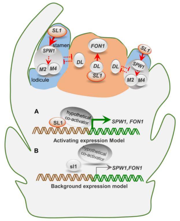 此外,《植物杂志》还在线发表了题为《STAMENLESS1 激活SUPERWOMAN 1 和FLORAL ORGAN NUMBER 1 调控水稻花器官身份特化和花分生组织命运》(STAMENLESS1 activates SUPERWOMAN 1andFLORAL ORGAN NUMBER 1to Control Floral Organ Identities and Meristem Fate in Rice)的研究论文,揭示了STAMENLESS1(SL1)编码一个 C2H2 单锌指结构域蛋白,与花同源异型基因SPW1(B类基因)以及DROOPING LEAF(DL)在特化花器官身份和花分生组织命运方面的相互作用,为完善水稻花/穗发育的分子网络提供了新的途径。Beat365中文官方网站为论文署名单位,博士后庄慧和研究生李宇欢为论文共同第一作者,李云峰教授为论文通讯作者。研究得到国家自然科学基金、重庆市自然科学基金、重庆现代农业产业技术体系和中国博士后科学基金资助项目的支持。