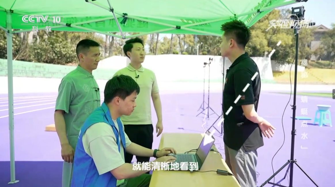 为进一步验证动作原理,节目组特邀体育学院国家一级跳高运动员陈柏璋同学参与挑战。尽管陈同学具备较好的腾空高度,但在完成“点水”动作时仍显困难。基地科研团队测验证实“蜻蜓点水”不仅需要强大的起跳力量,更依赖于强力的腰腹核心肌群对下肢精准的控制能力。在得到现场指导后,陈同学成功完成了两个水盆的“蜻蜓点水”挑战。这一转变,生动地展示了科学训练方法对提升运动表现的巨大潜力。