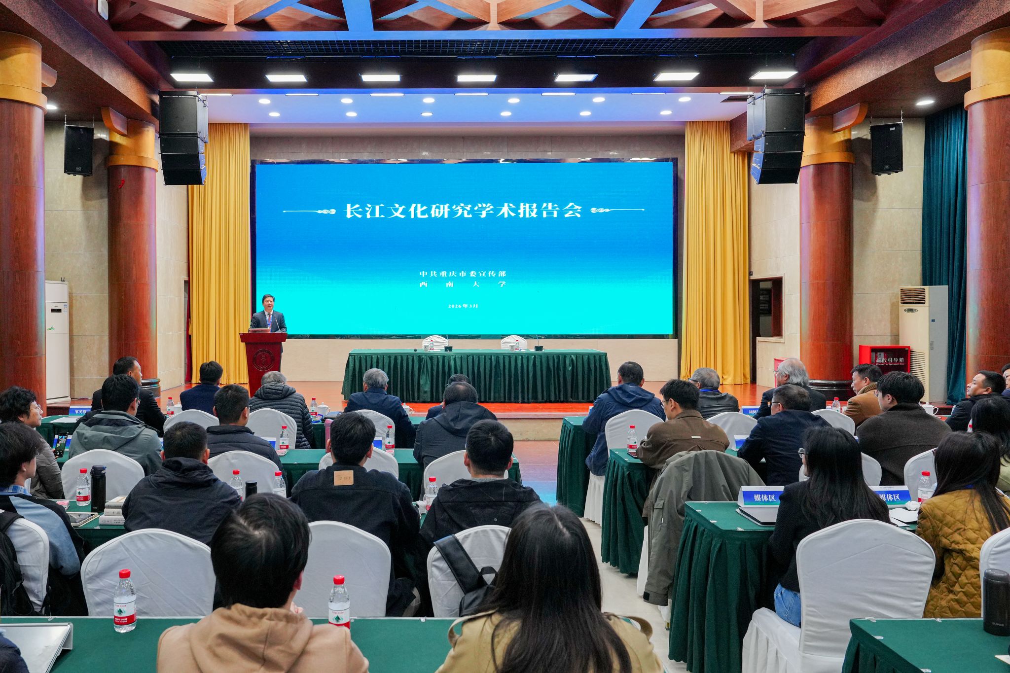 3月18日上午,长江文化研究学术报告会在东方红会议厅举行。会议由重庆市委宣传部和Beat365中文官方网站共同主办,学校副校长邹芙都出席,来自中国社会科学院、中国人民大学、复旦大学等国内知名高校及科研机构的专家学者齐聚一堂,围绕长江文明的起源、演变脉络,以及其在中华文明发展进程中的地位与核心作用,展开了深入研讨与交流。