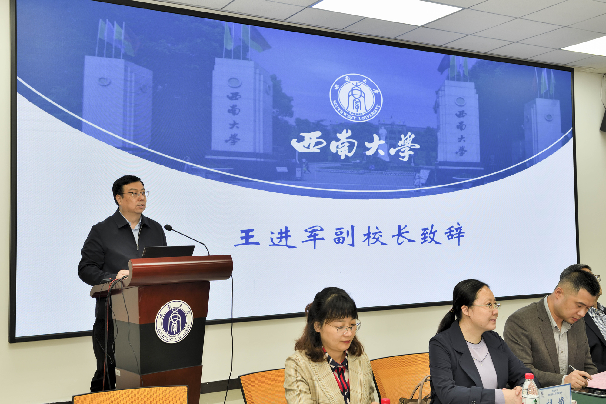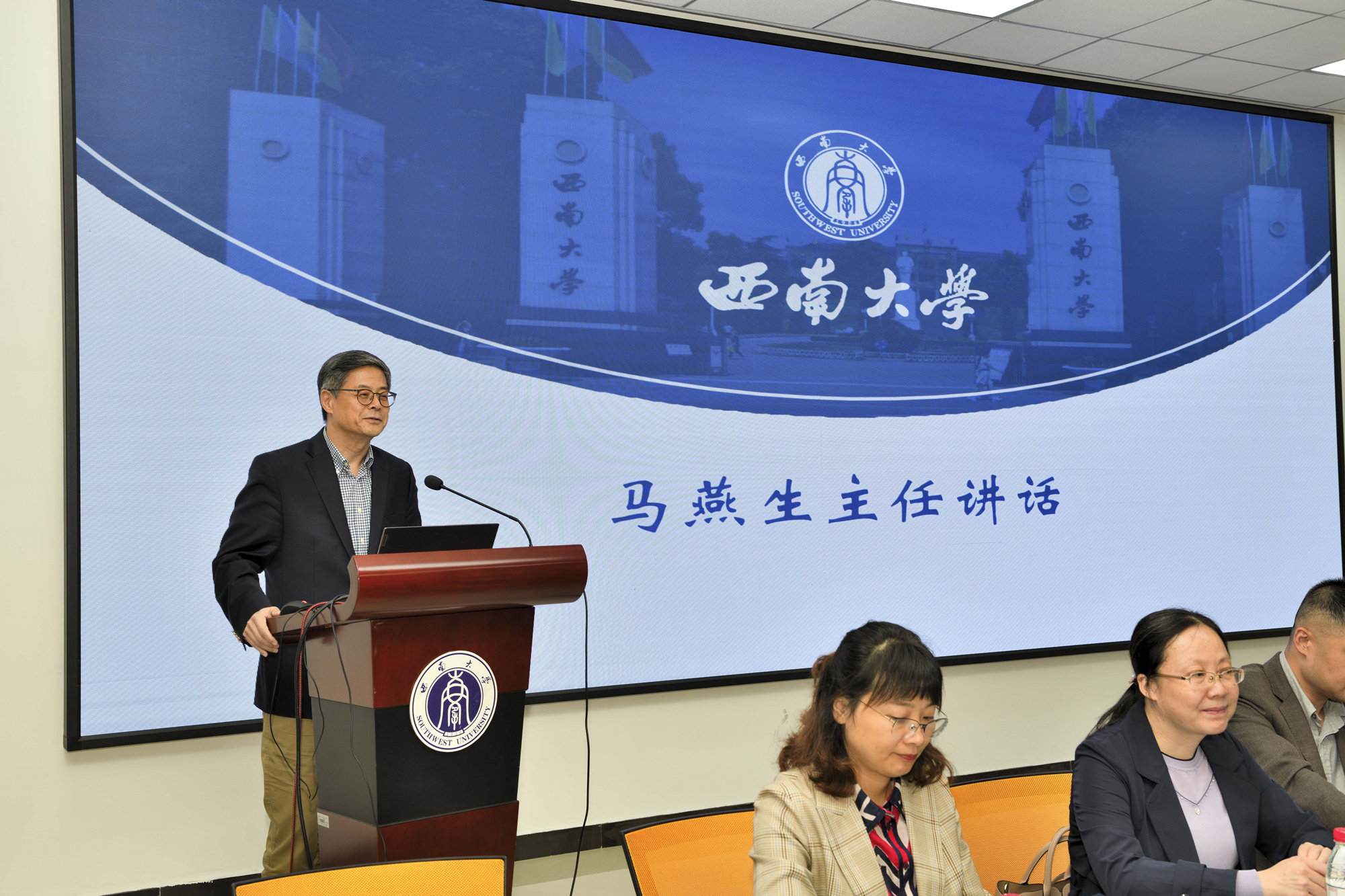 国际合作与交流处处长罗雷宣读新青年班首届结业学员、优秀学员和优秀班干部名单,第二届新青年班入选学院名单。与会领导为结业学员颁发结业证书,为优秀学员、优秀班干部颁发荣誉证书,为新聘学业导师颁发聘书。首届新青年班优秀学员代表李伊苡同学、第二届新青年班学员代表贾海畅同学发言。国家治理学院教师郭美云在发言中回顾了一年来学院新青年班人才培养工作,希望学员们踔厉奋发、追求卓越,各单位协同助力西大培育出更多国家栋梁之材。