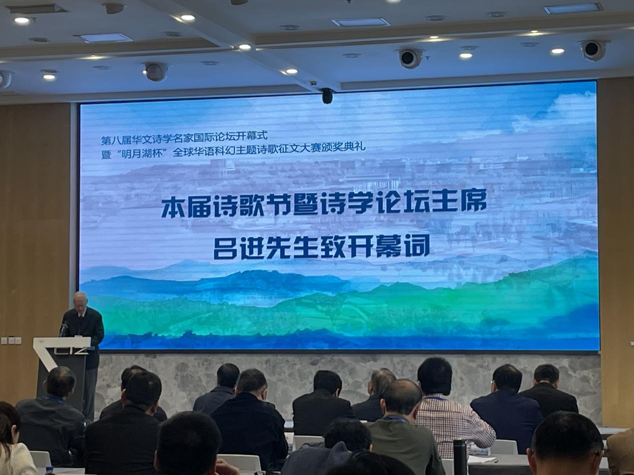 25日上午,第八届华文诗学名家国际论坛开幕式暨“明月湖杯”全球华语科幻诗歌主题征文大赛颁奖典礼举行。诗歌节暨诗学论坛主席、学校中国新诗研究所终身荣誉所长吕进教授致开幕辞,对远道而来的各位诗人、学者表示欢迎,并对诗歌节和诗学论坛的主题作阐释。两江投资集团党委委员、监事会主席陈曦以及《南方文坛》副主编曾攀先后致辞,祝贺诗歌节开幕。