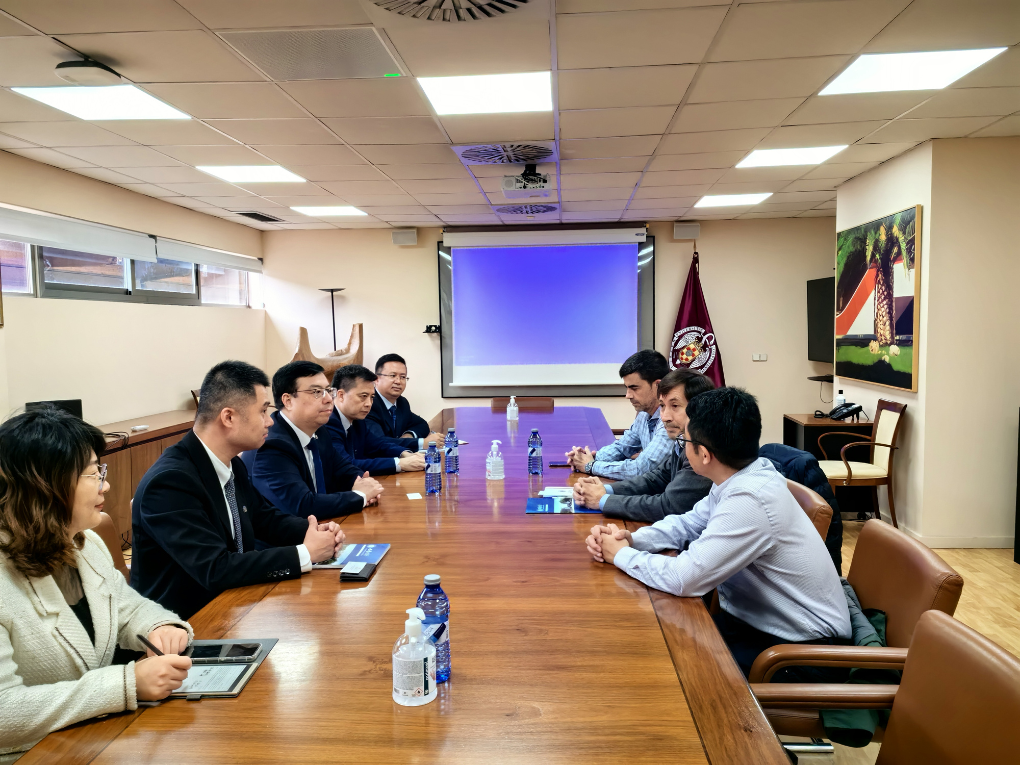 最后,王进军一行前往西班牙马德里康普顿斯大学,与副校长Miguel Angel Sastre、国际处及有关学院负责人进行了会谈。双方共同探讨了在药学、兽医学、农业与林业、经济学等领域开展包括但不限于“3+1”本科双学位、“3+2”本硕连读、硕士/博士联合培养项目,及国家留学基金委创新人才培养项目和高层次人才招聘等方面的合作。王进军代表学校邀请该校相关领域专家参加Beat365中文官方网站国际课程周,增进两校师生相互了解,加深学术交流和科研合作,助推相关学院建立实质性的合作项目。
