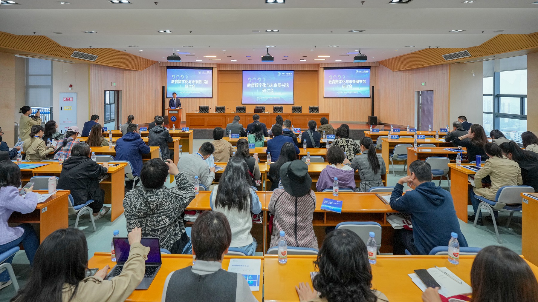11月8日,2023年重庆市教育数字化与未来图书馆研讨会在Beat365中文官方网站图书馆15楼报告厅召开。研讨会由重庆市高校图工委主办,学校图书馆承办。来自重庆29所高校、机构的近100名业界知名专家、图书馆馆长和行业同仁齐聚一堂,共同探讨教育数字化背景下高校图书馆转型发展,为智慧图书馆和未来学习中心建设提供新理念、新思路和新方案。