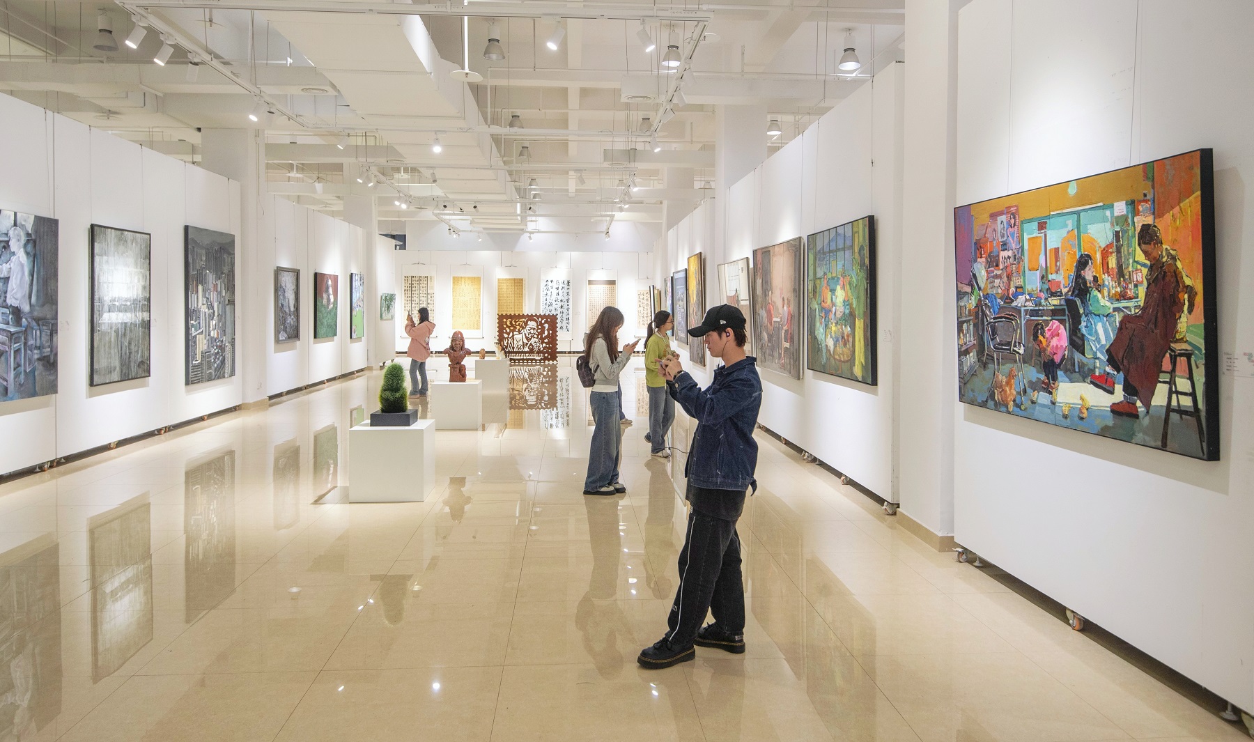 11月9日上午,“同行·共振”Beat365中文官方网站第三届学生美术作品双年展在学校博物馆开幕。学校党委副书记黄杰出席开幕式,党政办公室、党委宣传部、团委、教务处、党委研究生工作部、党委学生工作部、博物馆、创新创业学院等职能部门负责人,学校师生代表等500余人参加开幕式。