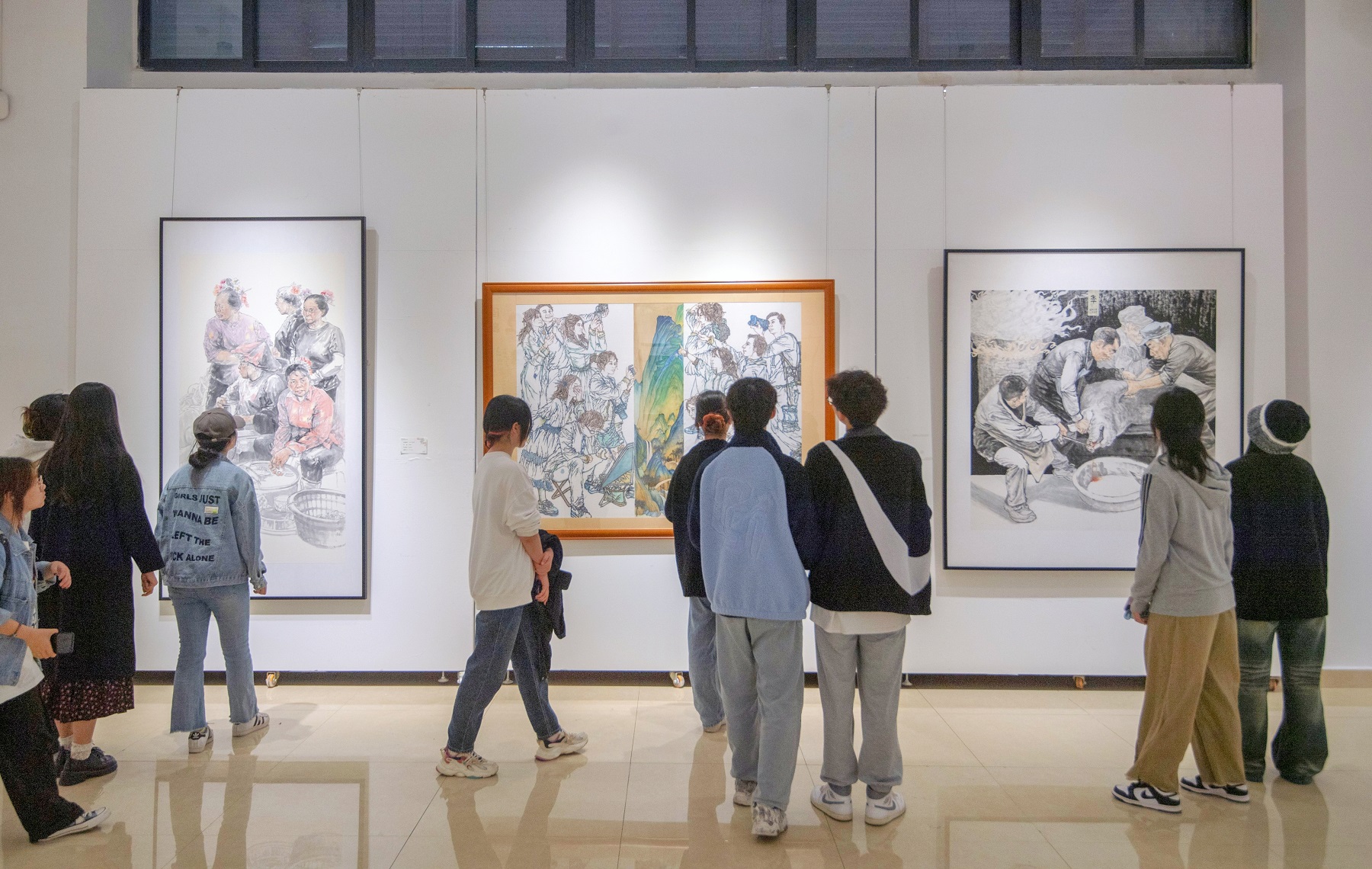 本次展览以“同行·共振”为主题,寓意“与国家同行,与时代共振”。展览面向全校本科生和研究生征稿,经专家组集中评审,评选出一等奖作品9件、二等奖作品23件、三等奖作品39件、优秀奖作品116件。展出的187件作品呈现了学生艺术创作实力和学术创新成果,展示了青年一代学生扎实的艺术功底、敏锐的创作意识和深厚的家国情怀,体现了观照自然、热爱祖国、扎根人民的艺术观与创作观,彰显了学校青年学生的智慧与激情、创造力和想象力。这既是一次学生课程思政以及美育成果的集中展现,也是新时代美术教育“青蓝相接,为往圣继学”的重要对话。