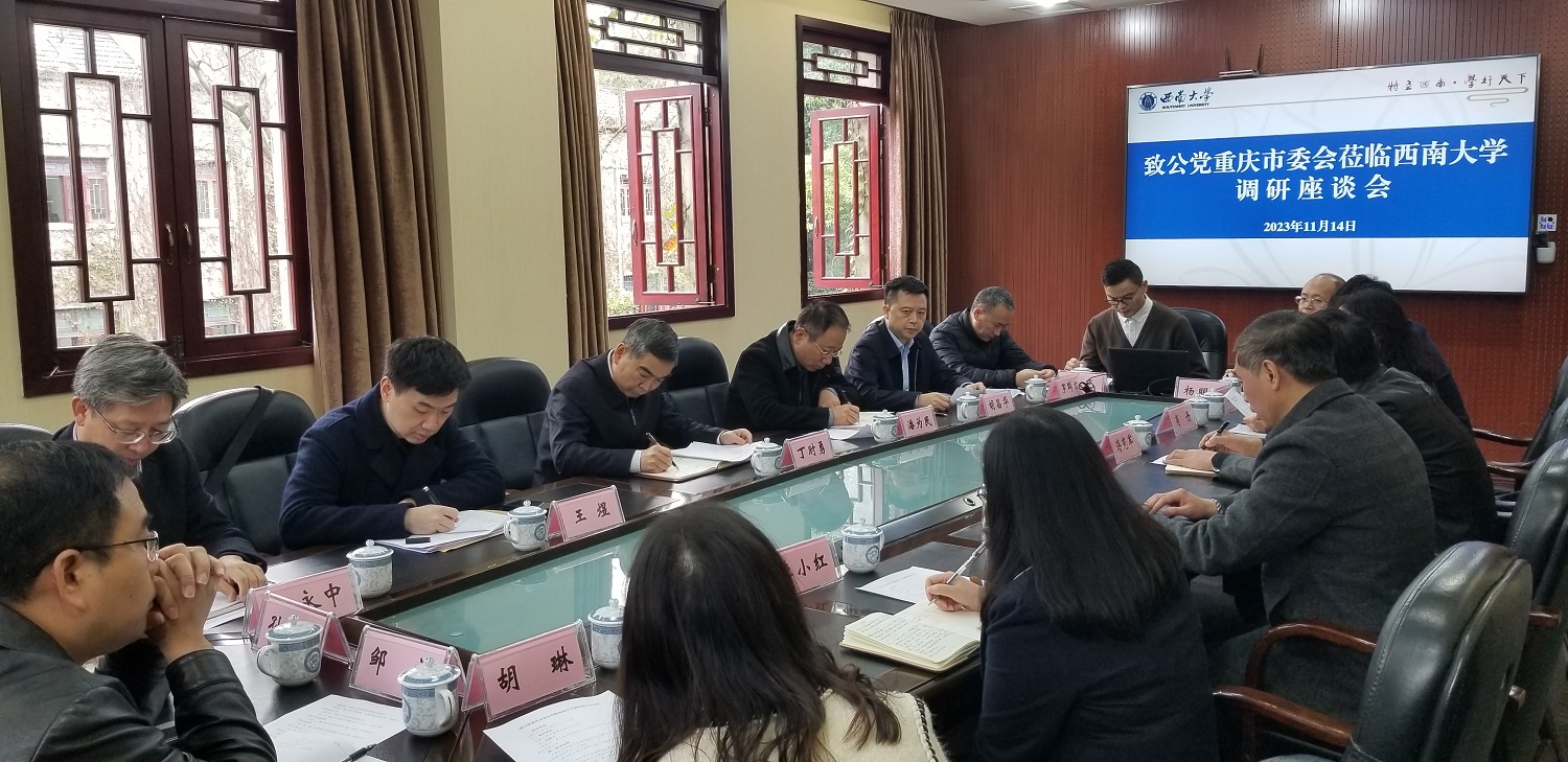 致公党市委会副主委潘为民,北碚区政协副主席、致公党北碚区委会主委、学校科技处处长胡昌华,致公党市委会组织处负责人,学校党委统战部负责人等陪同调研座谈。