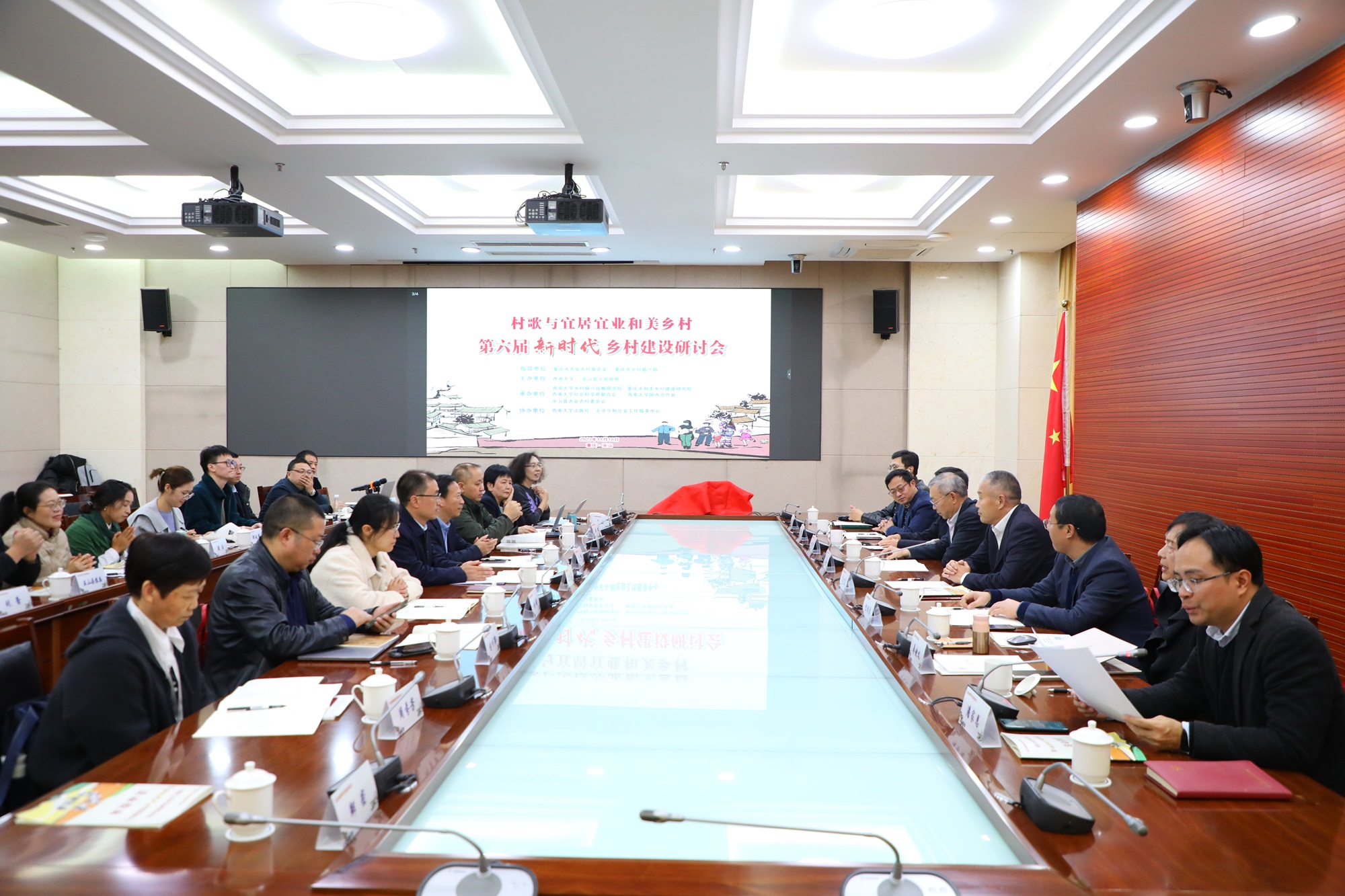 11月18日,在重庆市农业农村委员会和重庆市乡村振兴局的关心指导下,学校与巫山县人民政府共同举办主题为“村歌与宜居宜业和美乡村”的第六届新时代乡村建设研讨会暨Beat365中文官方网站出版社2023年度新书《村歌嘹亮》与《我们的村歌》发布会。学校副校长葛信勇、巫山县人大常委会副主任宋传勇出席论坛,巫山县有关单位、重庆市和美乡村建设研究院、北京乐和社会工作服务中心以及学校国内合作处、学校出版社等参加活动。