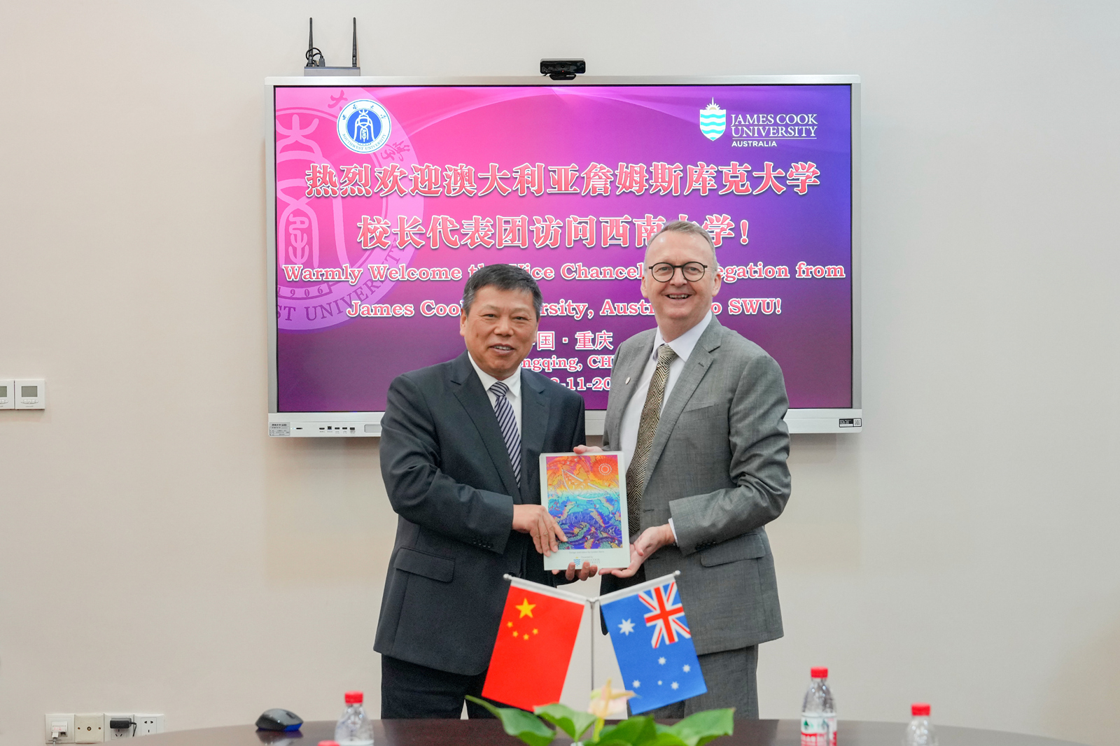 11月20日,澳大利亚詹姆斯库克大学校长西蒙·比格斯(Simon Biggs)及副校长马库斯·莱恩(Marcus Lane)一行访问学校,校长张卫国、副校长葛信勇会见客人。国际合作与交流处及动物科学技术学院等单位负责人参加座谈。