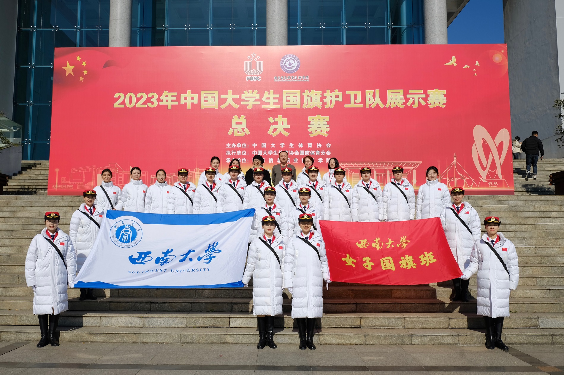 赛场上,学生女子国旗班队员们以饱满激扬的气势、整齐利落的动作、铿锵有力的步伐展现出西大学子高昂的精神面貌和高水平的训练成果,用汗水和热血履行“请党放心,强国有我,护旗有我”的铿锵使命,生动诠释了新时代西大学子的责任担当。据悉,大赛以中国人民解放军三军仪仗队国旗护卫队升降国旗相关规定及《队列条例》为基础,是目前为止我国影响力最大、水平最高、竞争力最强的高校学生国旗文化赛事之一。来自北京、浙江、湖南、四川、广东等13个省市的29所高校代表队600余名运动员参加本次大赛。