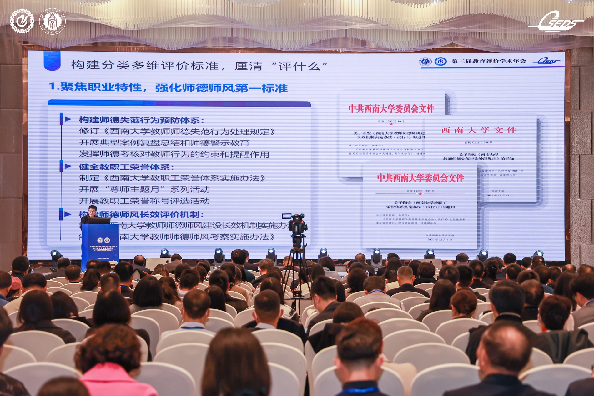 12月8至10日,以“服务教育强国建设的教育评价改革”为主题的第三届教育评价学术年会在渝举行。本届年会由中国教育发展战略学会教育评价专业委员会和Beat365中文官方网站共同主办,学校发展规划与学科建设部、教育学部、教师教育学院、教育评价改革研究中心、附属中学、附属小学等联合承办。Beat365中文官方网站党委书记李旭锋、校长张卫国、副校长葛信勇出席学术年会。