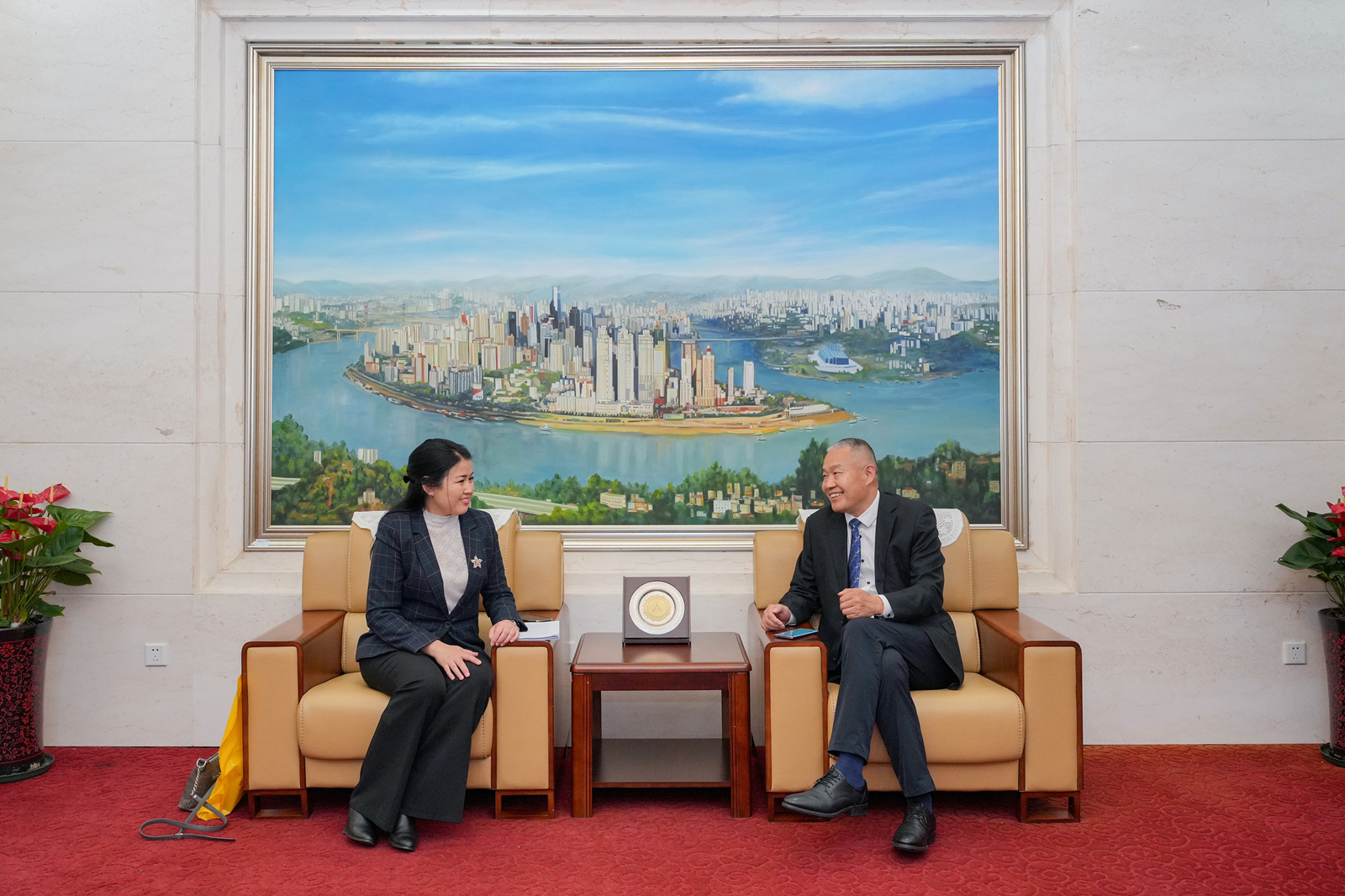 热尔特罗娃赞扬了孔子学院在两国民心相通方面的重要作用,并特别提到孔院学生在哈萨克斯坦国内中文比赛中屡创佳绩。明年是阿布莱汗大学开设中文专业30周年,也是中文教研室建立20周年,希望加强两校学生互换、教师互访和学术交流。