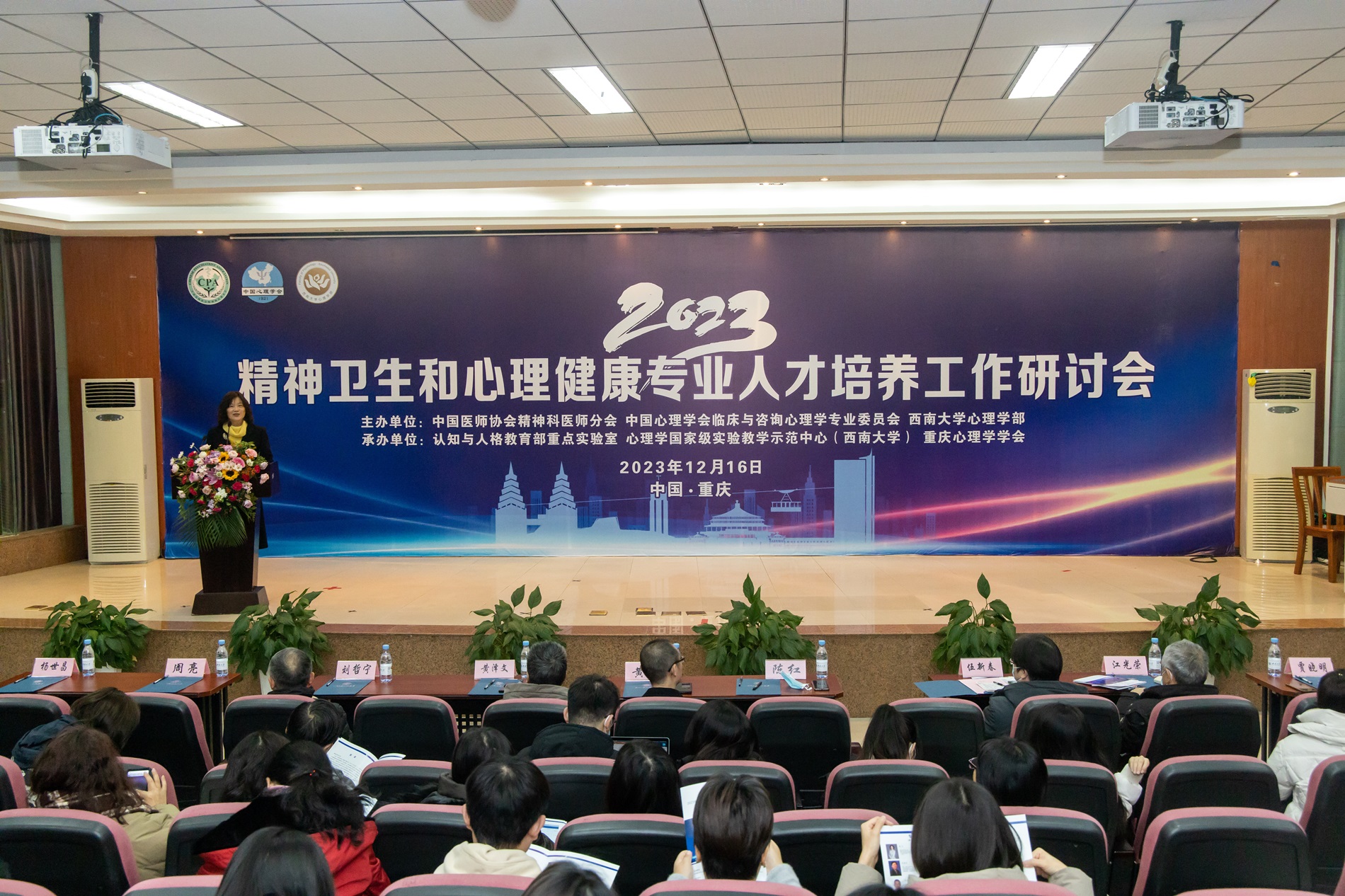 12月16日,2023年精神卫生和心理健康专业人才培养工作研讨会在学校心理学部召开。本次会议由中国医师协会精神科医师分会、中国心理学会临床与咨询心理学专业委员会以及学校心理学部主办,认知与人格教育部重点实验室、心理学国家级实验教学示范中心(Beat365中文官方网站)、重庆心理学学会承办。来自全国100余名教育系统、医疗卫生系统、社会服务机构的精神卫生和心理健康工作从业者及国家心理健康和精神卫生防治中心的有关负责人参加会议。大会开幕式由心理学部部长陈红主持。