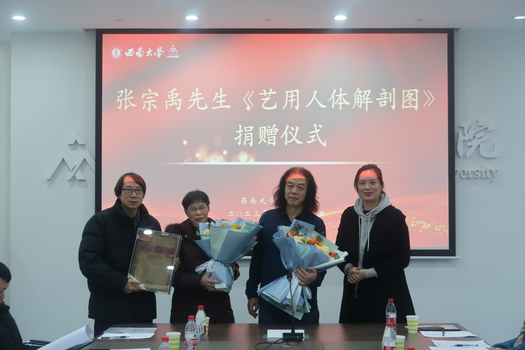 近日,张宗禹先生女儿张志齐女士及外孙张环宇先生代表全体家属向美术学院捐赠了张宗禹先生编译的《艺用人体解剖图》。美术学院党政领导班子全体成员,师生代表参加了捐赠仪式,仪式由美术学院党委书记张瑜主持。