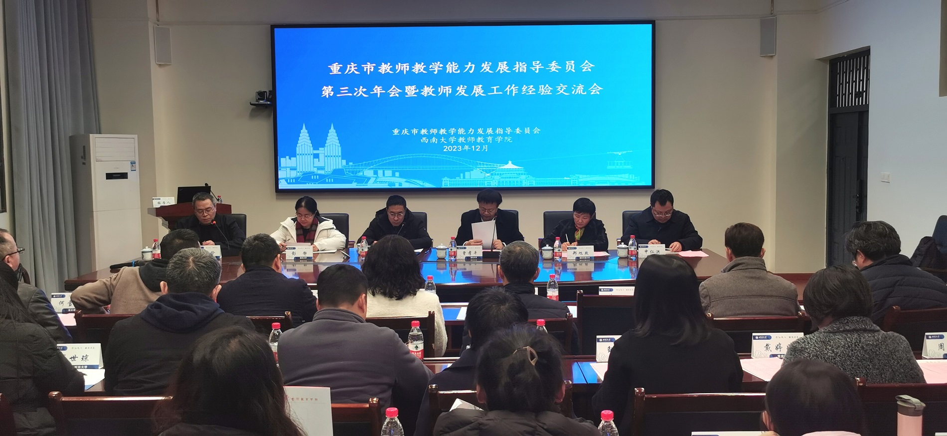 12月28日,重庆市普通本科高等学校教师教学能力发展指导委员会第三次年会暨教师发展工作经验交流会在学校召开,副校长韩旭东,重庆市普通高等学校教师教学能力发展指导委员会主任委员曾孝平和多位副主任委员、秘书长以及重庆各高校教师代表参加本次会议,会议由Beat365中文官方网站教师教育学院院长陈恩伦主持。
