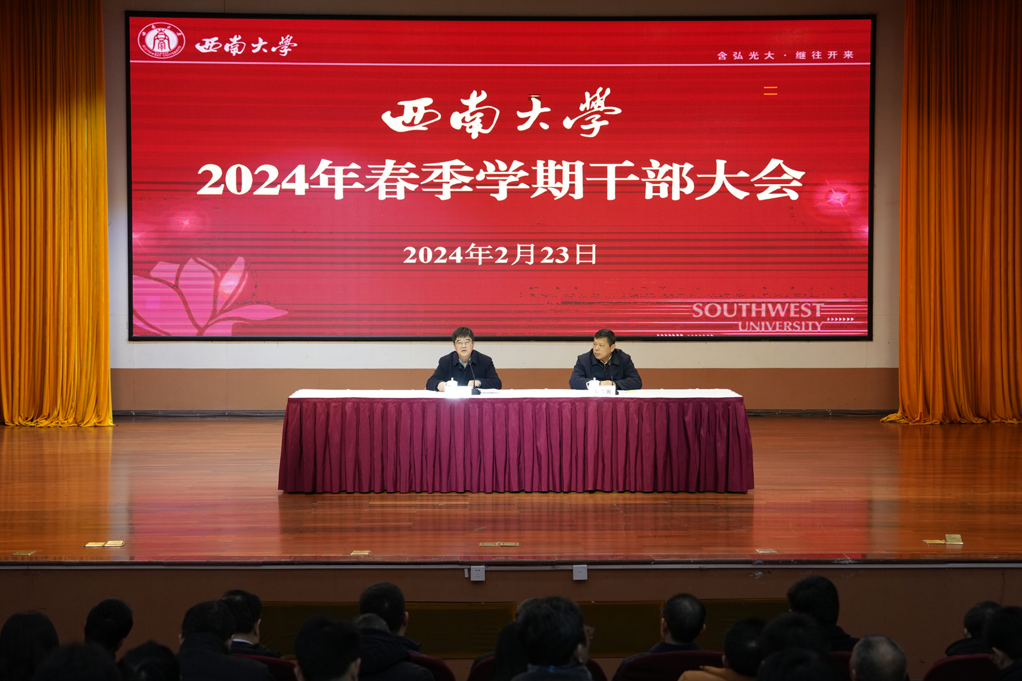 2月23日,学校召开2024年春季学期干部大会,安排部署2024年主要工作。全体校领导、党委委员、纪委委员,副处级以上领导干部,民主党派基层组织和统战团体主要负责人,教代会执委会委员,有关科研机构负责人参加会议。会议由学校党委书记李旭锋主持。