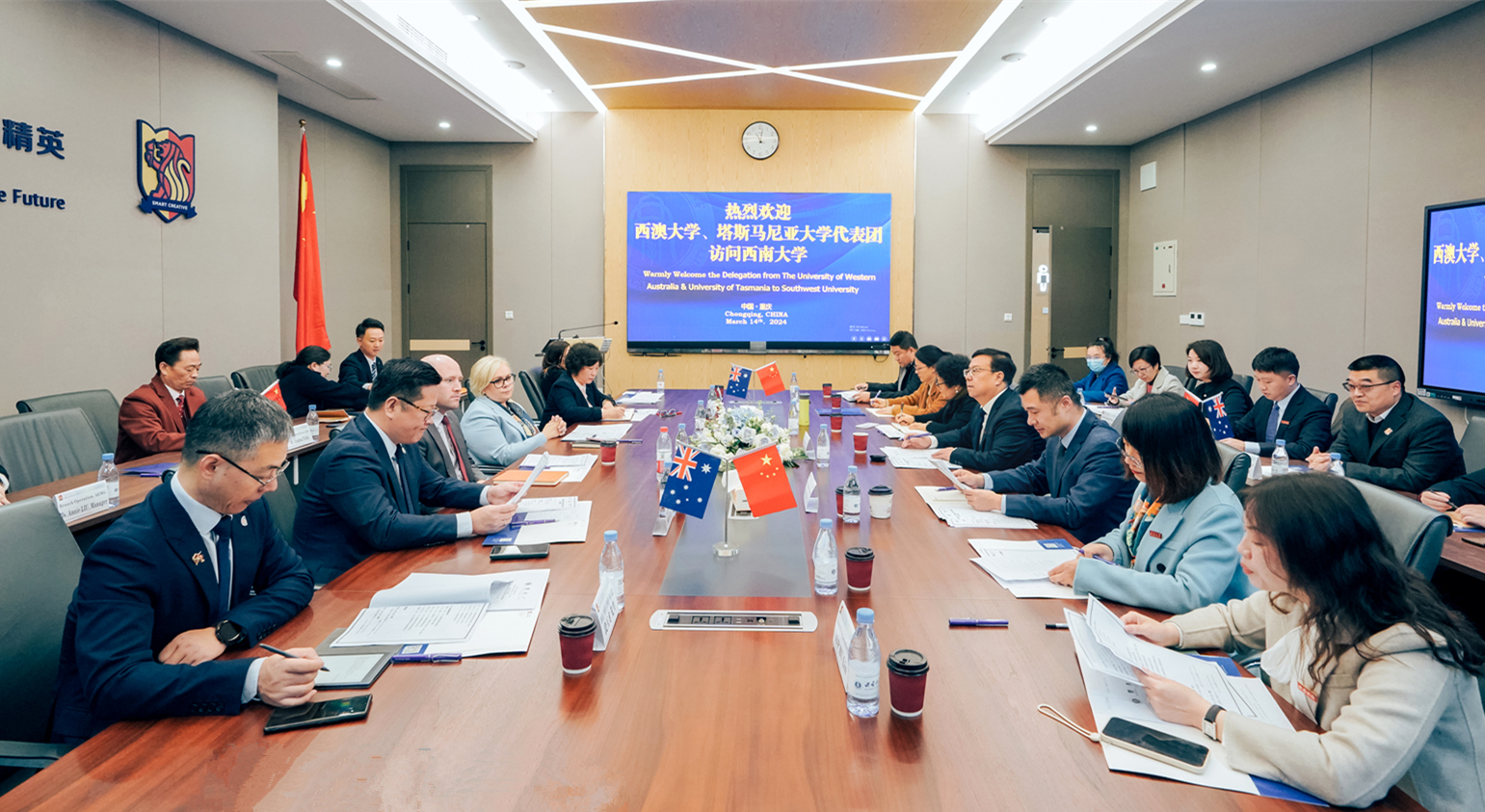 詹尼弗·豪厄尔对西塔学院的建设理念和办学成果给予高度评价,感谢办学过程中各方人员的辛勤付出。她表示,两校专业领域高度契合,为未来潜在的合作提供了机遇。期望以本科生培养为基础,加强两校多层次宽领域合作,推动两校校际友好关系不断发展。罗伯·威尔逊表示塔斯马尼亚大学积极利用各种契机推进与西塔学院的合作交流,希望两校持续深化合作领域,共同探索建立师资交流等长效合作机制。西塔学院院长谢洁介绍了学院高素质人才培养模式,希望引进更多澳方专业课程,加强三校学术交流和科研合作,助力西塔学院建设和学校国际化发展。