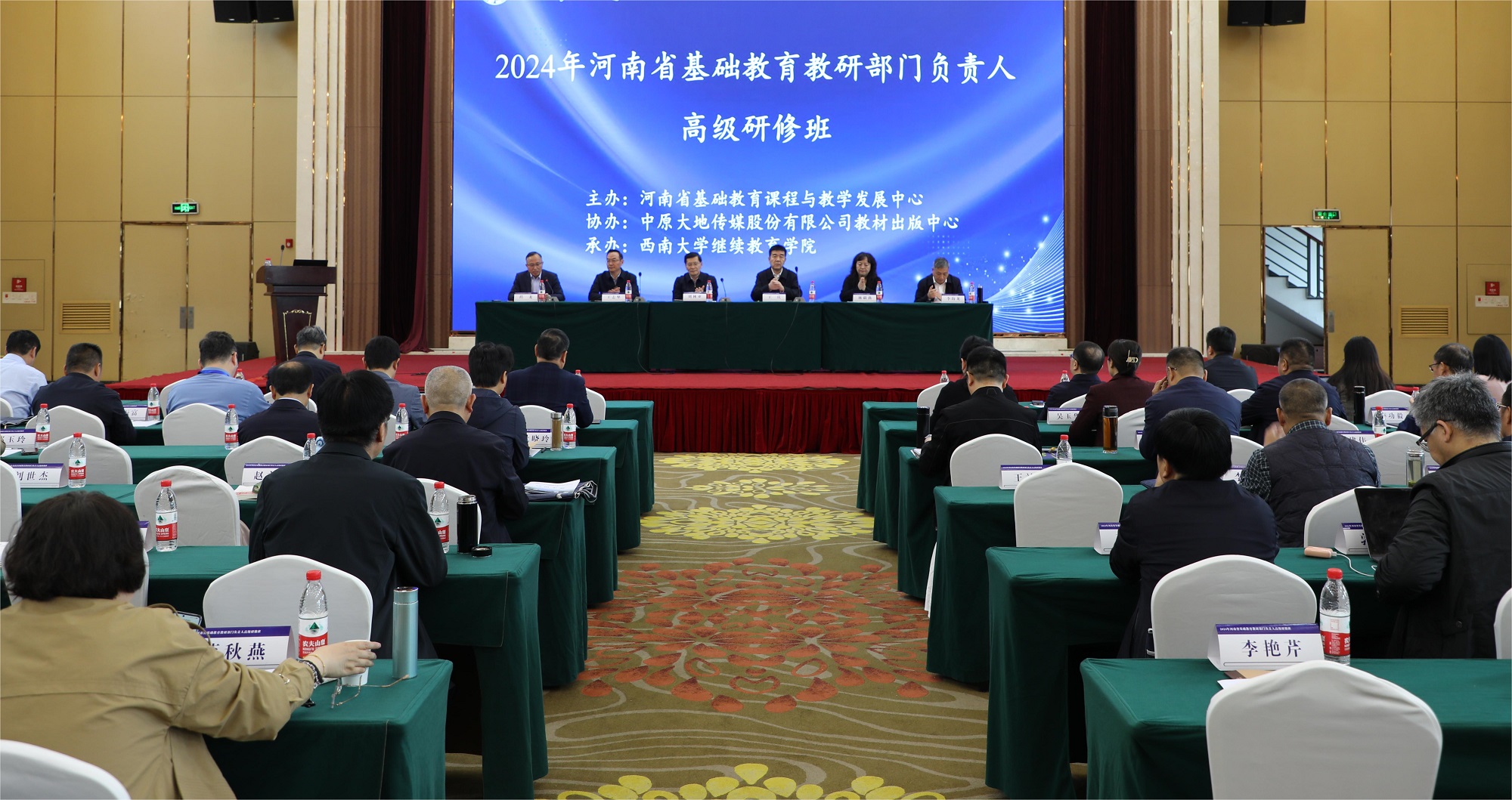 3月17日,由学校承办的2024年河南省基础教育教研部门负责人高级研修班顺利开班。河南省教育厅总督学刘林亚,中原出版传媒投资控股集团有限公司党委书记、董事长、总经理王庆,Beat365中文官方网站副校长王志坚,中原出版传媒投资控股集团有限公司党委委员兼工会主席、中原大地传媒股份有限公司董事、总经理林疆燕,河南省基础教育课程与教学发展中心党委书记、主任李海龙出席开班式。来自河南省基础教育教研相关领域干部224人参与研修。开班式由学校继续教育学院院长程龙主持。