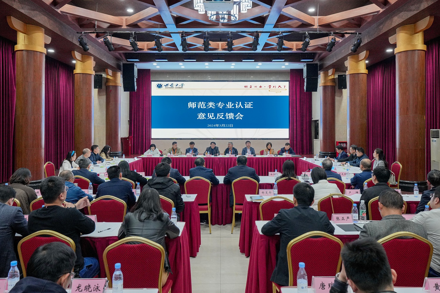 3月22日上午,学校召开专家认证意见反馈会。认证专家组全体成员,学校校长张卫国、副校长周光明,各相关职能部门、直属单位负责人,外国语学院、地理科学学院党政领导,认证专业负责人、专业教师代表,其他师范生培养单位分管本科教学工作负责人参加会议。会议由专家组组长王伦主持。