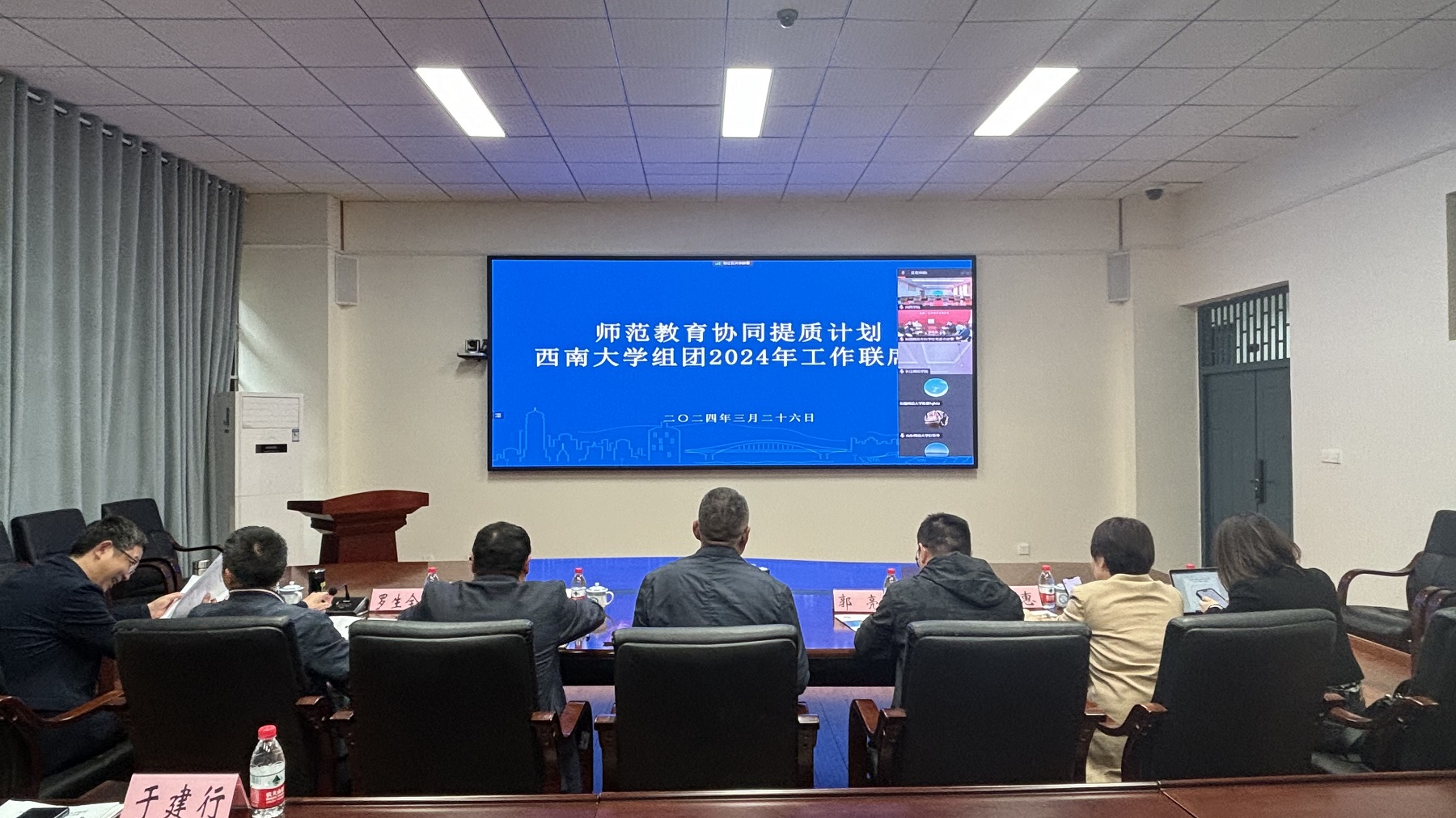 3月26日上午,教育部师范教育协同提质计划Beat365中文官方网站组团2024年工作联席会议在学校师元楼召开。新疆师范大学、山东师范大学、重庆师范大学、和田师范专科学校、河西学院、长江师范学院和Beat365中文官方网站相关校领导、相关职能部门及师范教育协同提质计划具体工作负责人出席会议。会议以线上线下相结合的方式举行。