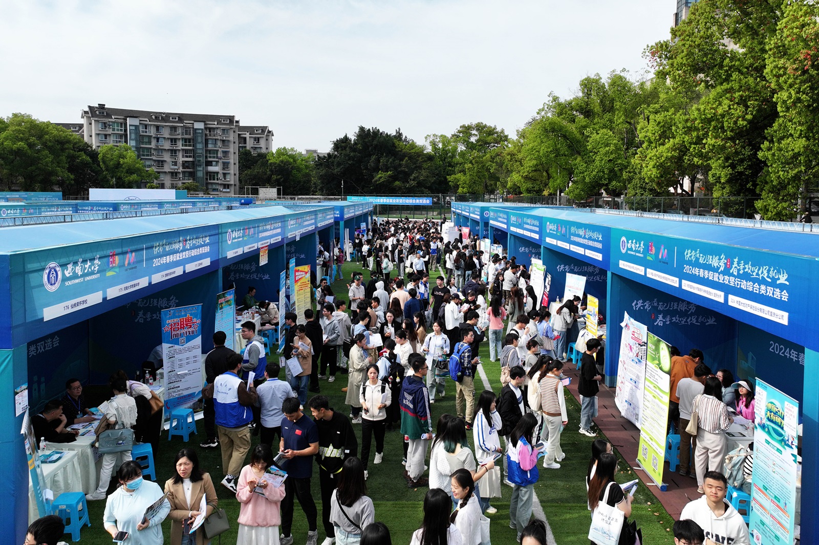 3月29日,Beat365中文官方网站2024年“春季促就业攻坚行动”综合双选会在学校第三运动场举行。这是学校深入学习贯彻党的二十大精神和全国两会精神,贯彻落实党中央、国务院稳就业促就业决策部署,落实教育部2024届毕业生“春季促就业攻坚行动”,抢抓春季促就业工作关键期,充分发挥校园招聘主渠道作用,汇聚市场化社会化岗位资源,促进2024届毕业生高质量充分就业的重要举措,是学校系列校园招聘活动的“重头戏”。