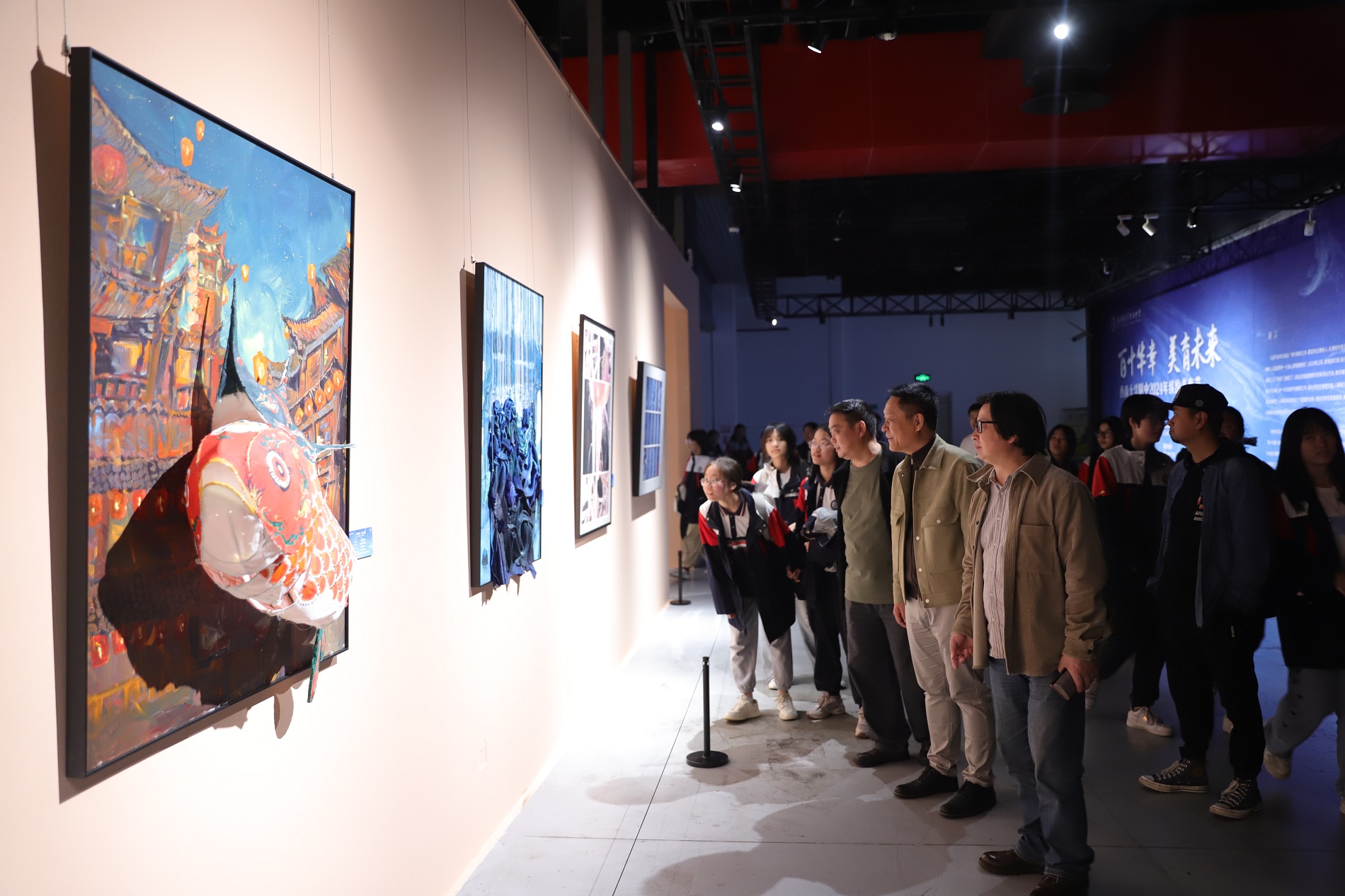 美育作为价值观教育的重要载体和关键途径,承担着塑造学生精神世界、传递中华优秀文化传统的重任,是教育体系中不可或缺的一环。展厅中,师生们形式多样的艺术作品汇聚了生产生活的生动画面、风景秀丽的大好河山、“脑洞十足”的创意幻想等。一幅幅作品展示出的青春气息和炫彩世界,吸引了众多观众驻足观赏。