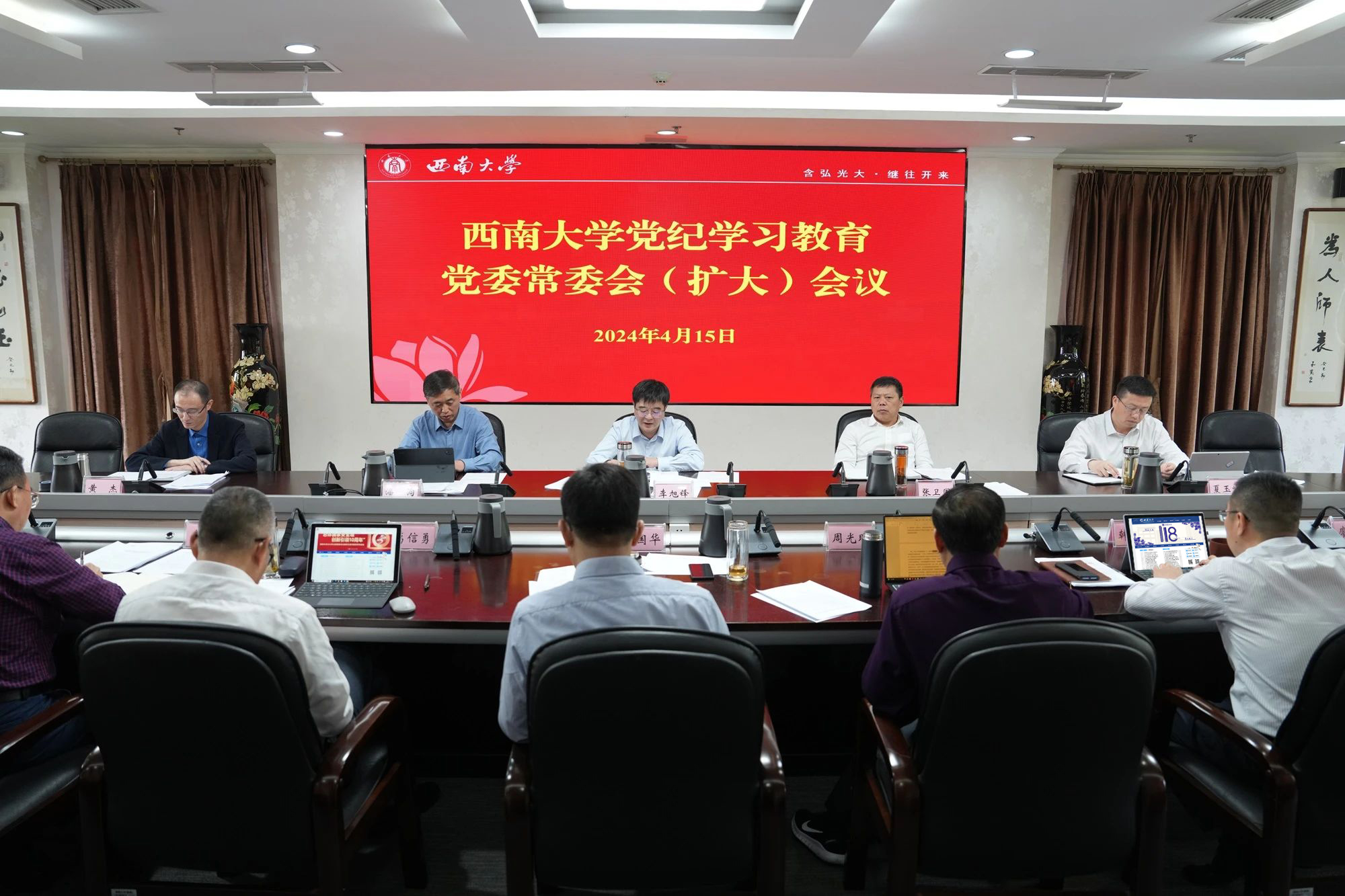会议由学校党委书记、党的建设和全面从严治党工作领导小组组长李旭锋主持。校长、党委副书记张卫国带领大家一起集体学习习近平总书记关于开展党纪学习教育的重要讲话精神和有关通知精神。学校党委副书记潘洵汇报学校开展党纪学习教育工作方案。李旭锋作动员部署讲话。