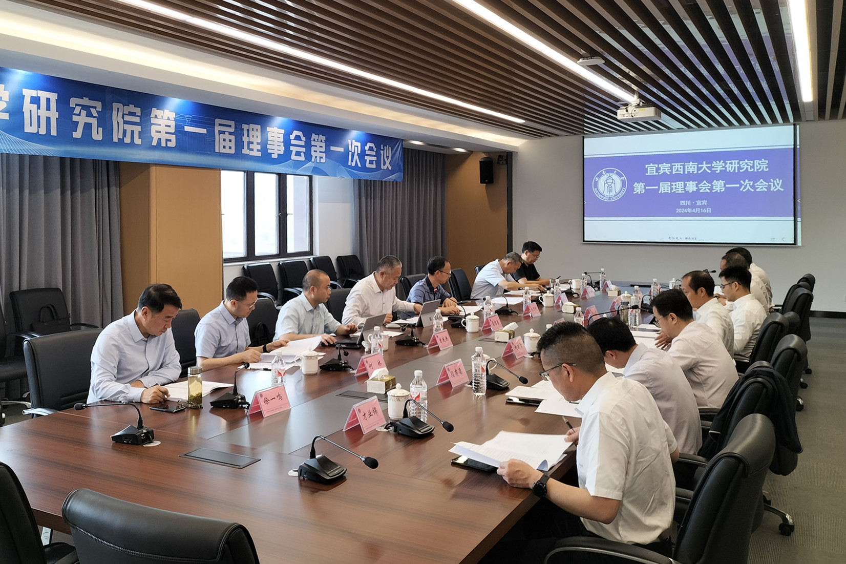 4月16日上午,宜宾Beat365中文官方网站研究院(以下简称“研究院”)第一届理事会第一次会议在宜宾顺利召开。学校副校长、研究院理事会理事长葛信勇出席会议,受宜宾市副市长、研究院理事长周文宇委托,宜宾市二级巡视员朱志刚出席会议,研究院第一届理事会市校双方全体理事成员单位负责同志参加会议。会议由葛信勇主持。