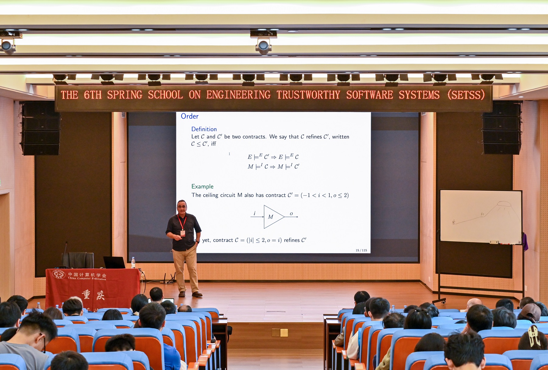 本次春季学校的主题是“人机物融合计算与软件系统的建模、设计和可信性保障——理论、方法和工具”。美国莱斯大学杰出服务教授、世界著名计算机科学家、逻辑学家Moshe Y. Vardi院士,中国科学院何积丰院士,英国皇家工程院James Charles Paul Woodcock院士,德国奥登堡大学副校长Martin Georg Fränzle教授,INRIA高级科学家Jean-Pierre Talpin教授等众多海内外专家学者应邀参加,来自全球20余所高校以及相关科研机构的120余名师生共同参与。