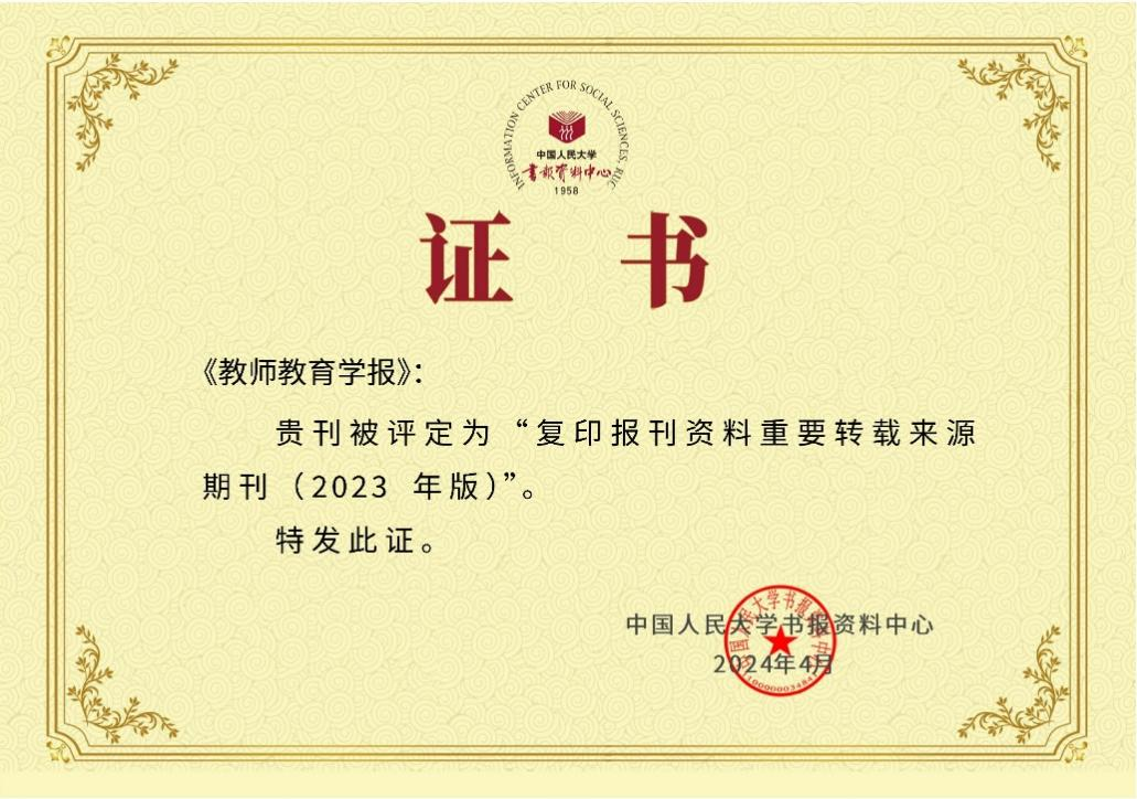 4月25日,中国人民大学评价研究中心正式发布了《复印报刊资料重要转载来源期刊(2023年版)》。学校《Beat365中文官方网站学报(社会科学版)》再次入选,《教师教育学报》首次入选。
