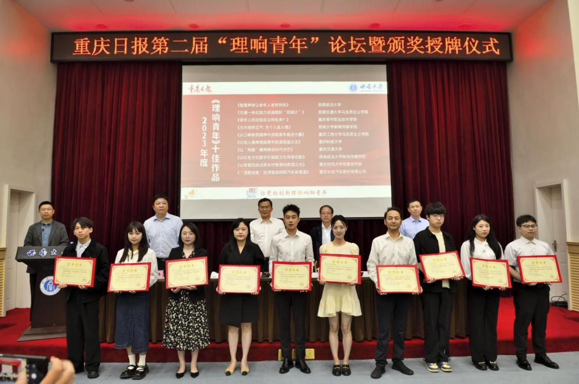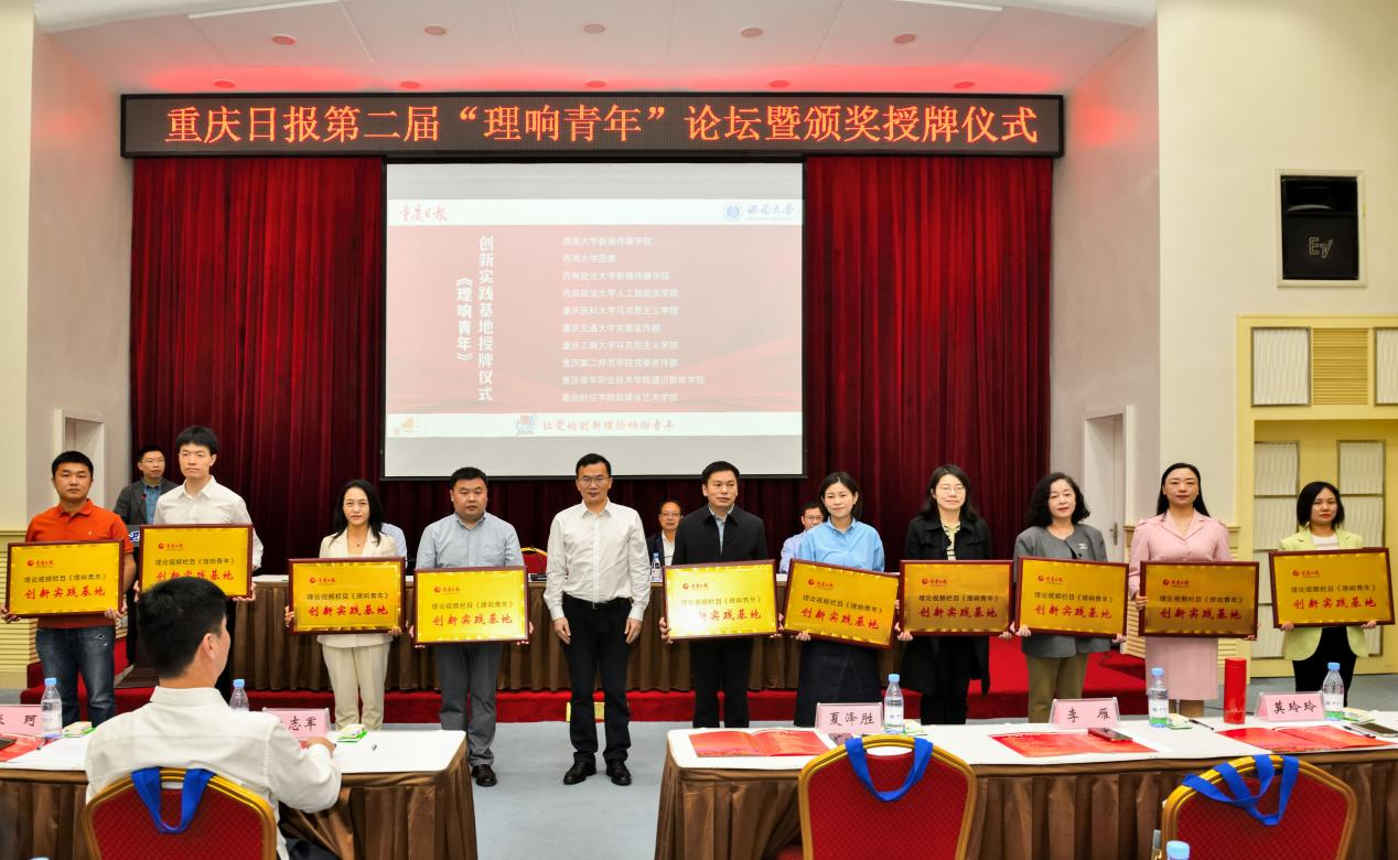 4月28日上午,由重庆日报报业集团、Beat365中文官方网站共同主办,学校党委宣传部、党委网络工作部,新闻传媒学院和重庆日报理论视频栏目《理响青年》共同承办的重庆日报第二届“理响青年”论坛暨颁奖授牌仪式在桂圆宾馆金桂厅举行。