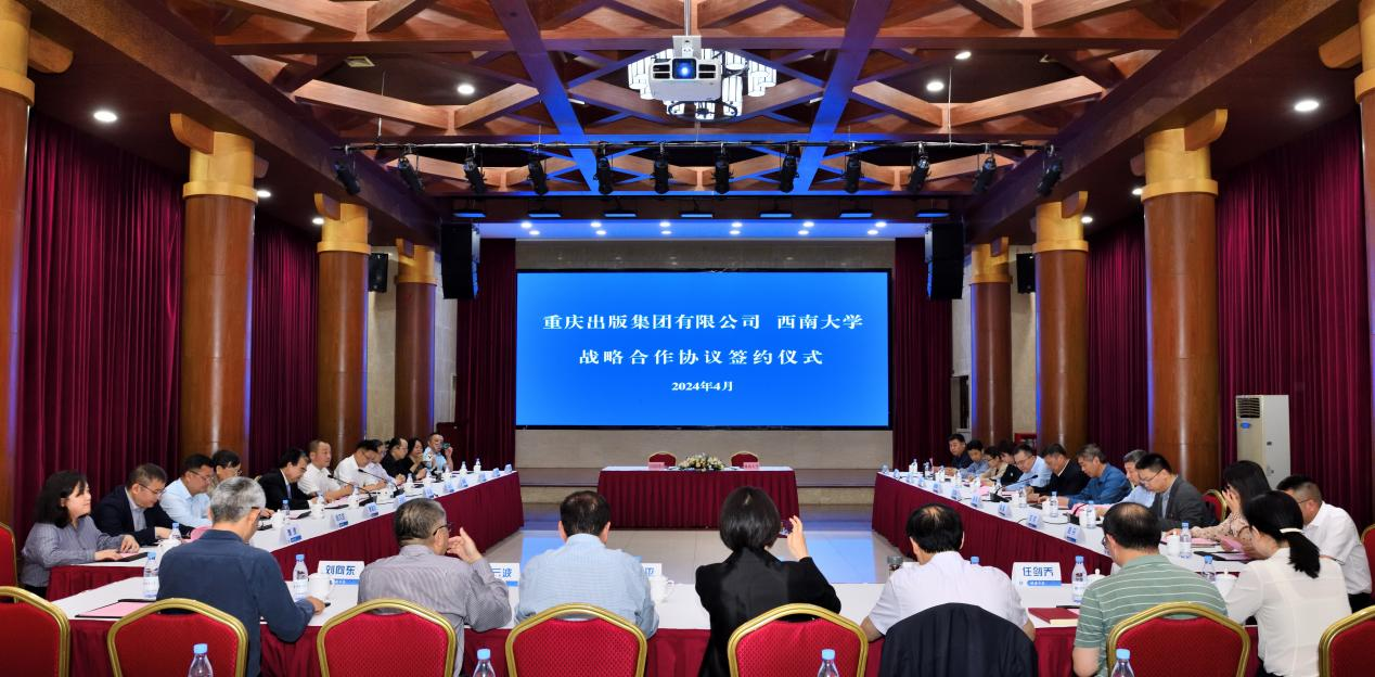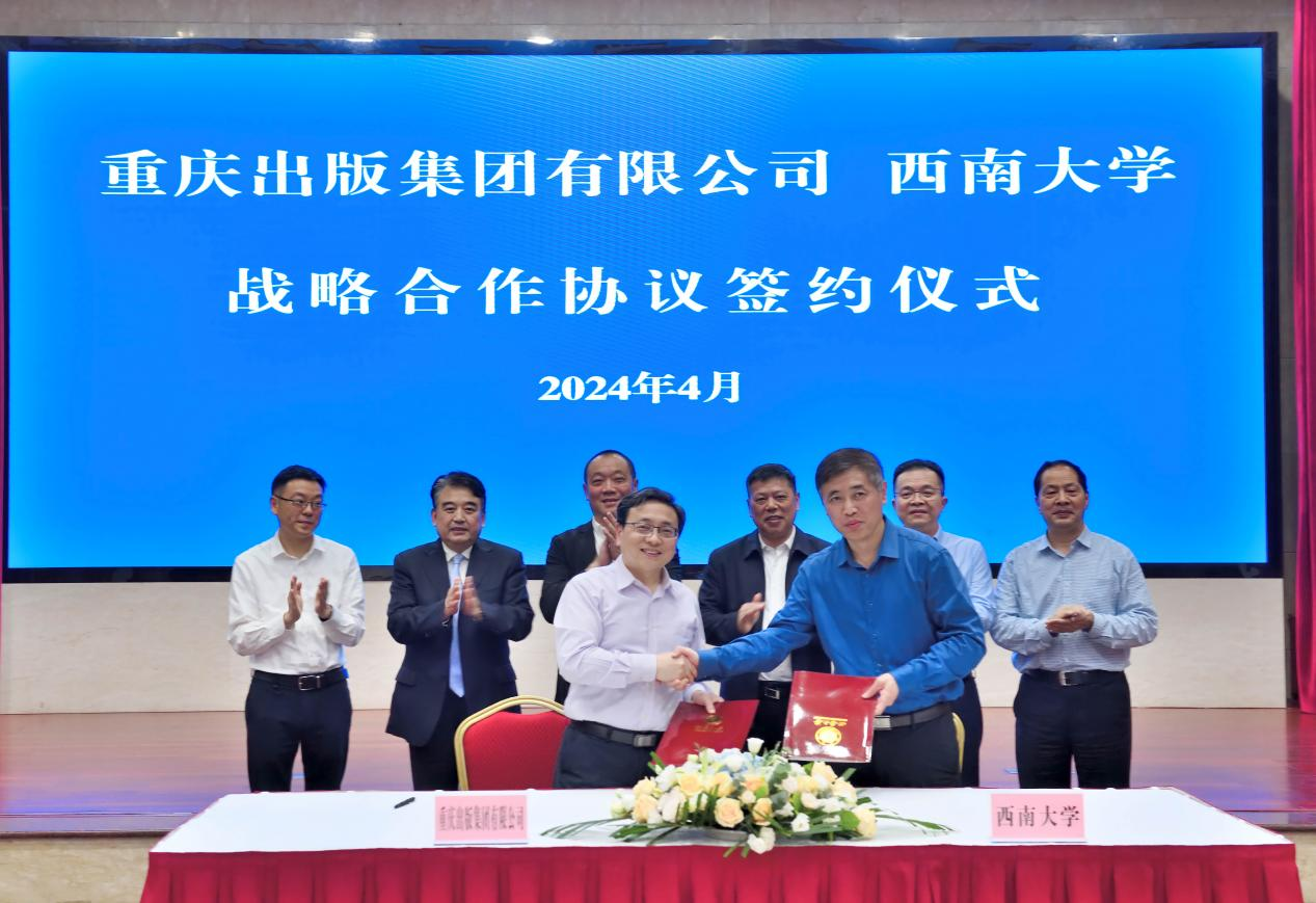4月29日,“重庆出版集团有限公司 Beat365中文官方网站战略合作协议签约仪式”在东方红会议厅举行。重庆出版集团有限公司党委书记、董事长、总经理李斌,副总经理邱振邦,学校党委书记张卫国、党委副书记潘洵,高等学校出版专业教学指导委员会副主任委员兼秘书长、北京印刷学院原副校长王关义,市委宣传部出版处处长蒲洋出席仪式。重庆出版集团、学校有关部门负责人,专家学者代表参会。仪式由新闻传媒学院院长龙伟主持。