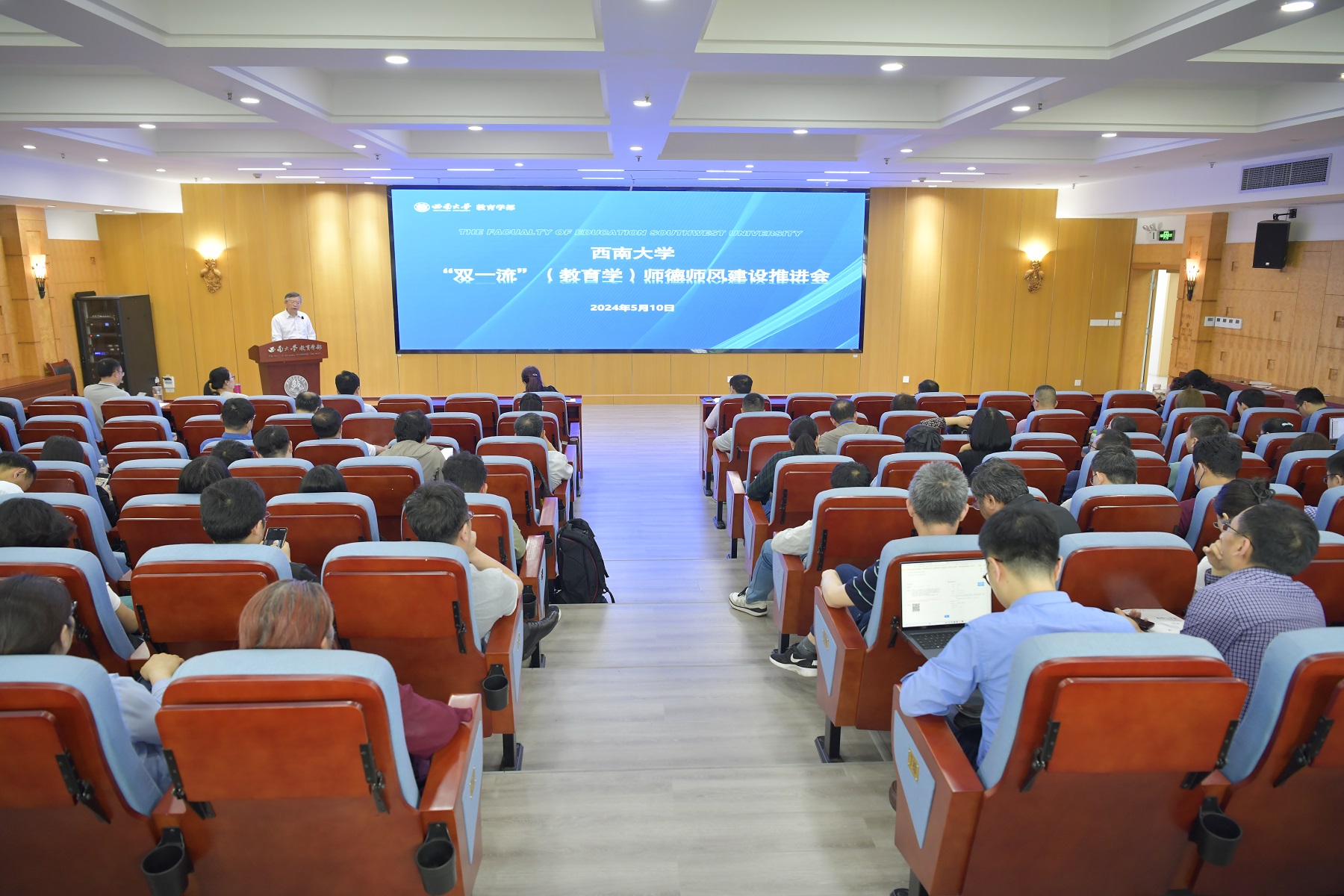 聚焦以案明纪,突出案例教学,强化“警示震慑”。计算机与信息科学学院软件学院党委、化学化工学院党委、西塔学院党委等强化警示教育,通过观看违纪案例视频、剖析案例原因、学习正面典型事迹等形式,以案说纪、以案说法、以案说德、以案说责。教育学部党委召开“双一流”(教育学)师德师风建设推进会,以学校优秀教师事迹和违反师德师风警示案例切入,引导全体教师弘扬教育家精神,强化规矩意识和自律意识。地理科学学院地理科学(师范)系教师党支部邀请重庆市教育考试院命题一处副处长作安全保密工作专题报告,深入剖析教育考试工作的重点内容和纪律要求,强化高校命题全过程、各方面的安全保密工作。电子信息工程学院党委开展弘扬科学家精神宣讲比赛,柑桔研究所党委组织师生党员听取袁隆平系列廉故事之《幼年袁隆平:一粒饱满的种子》,档案馆、校史馆、博物馆演绎原创情景剧《大地之子·侯光炯》,挖掘校史中的廉洁故事,让“清廉之风”吹满校园。