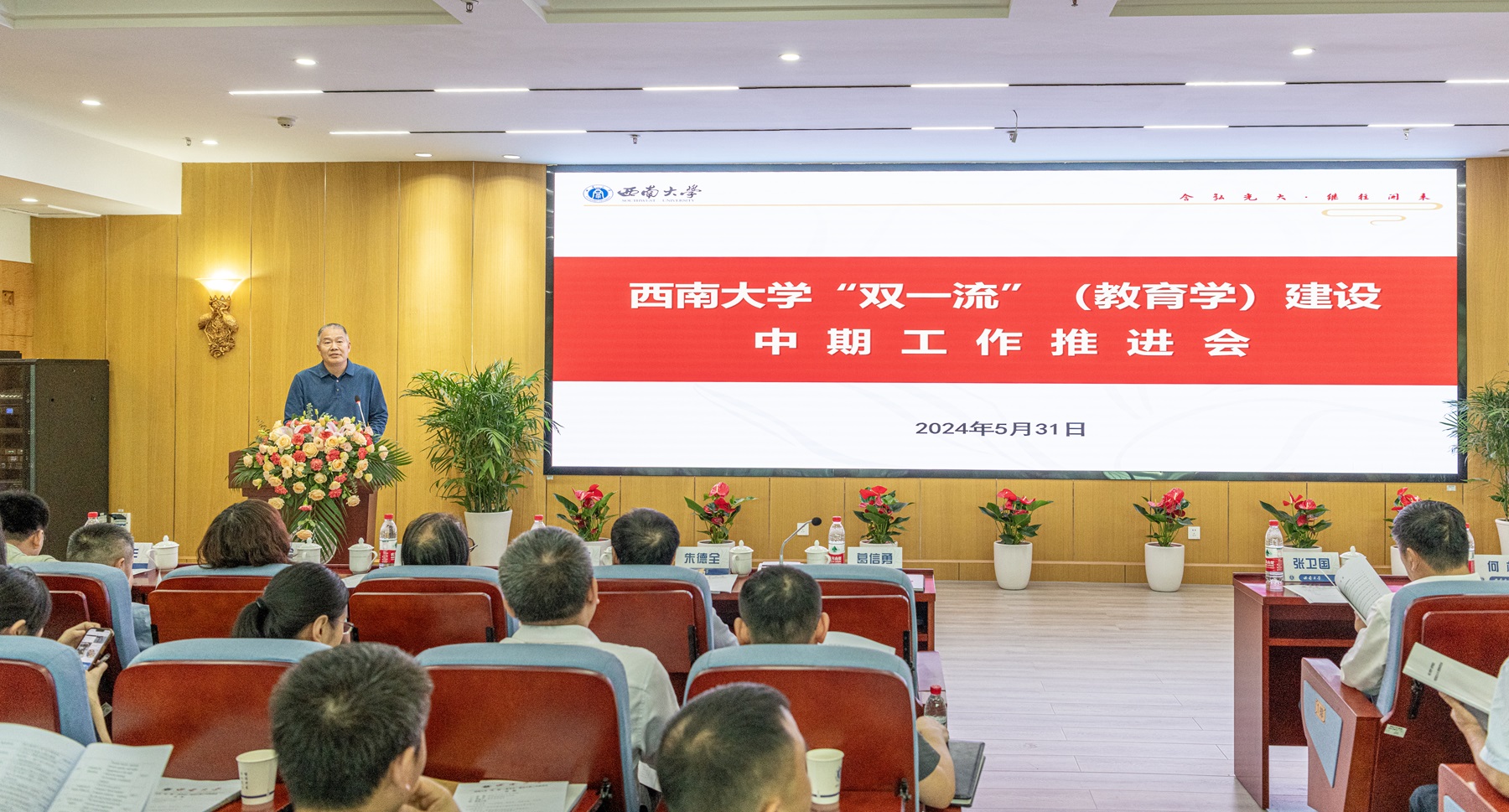 5月31日下午,Beat365中文官方网站“双一流”(教育学)建设中期工作推进会在田家炳802会议室顺利召开。学校党委书记张卫国,副校长葛信勇,发展规划与学科建设部、人力资源部、教务处、研究生院、社会科学处、国际合作与交流处等单位负责人,教育学一流学科建设支撑单位党政主要负责人,教育学部、西南民族教育与心理研究中心全体教职工参加了会议。会议由葛信勇主持。