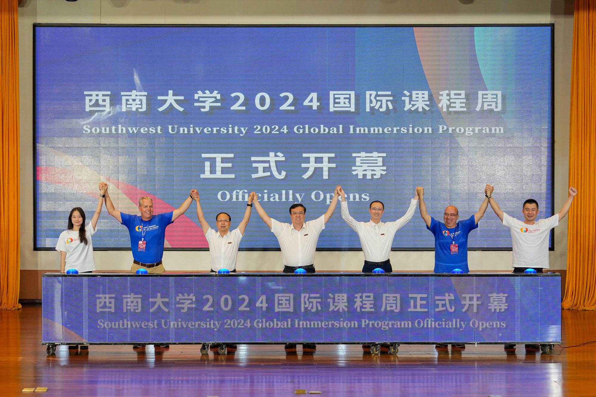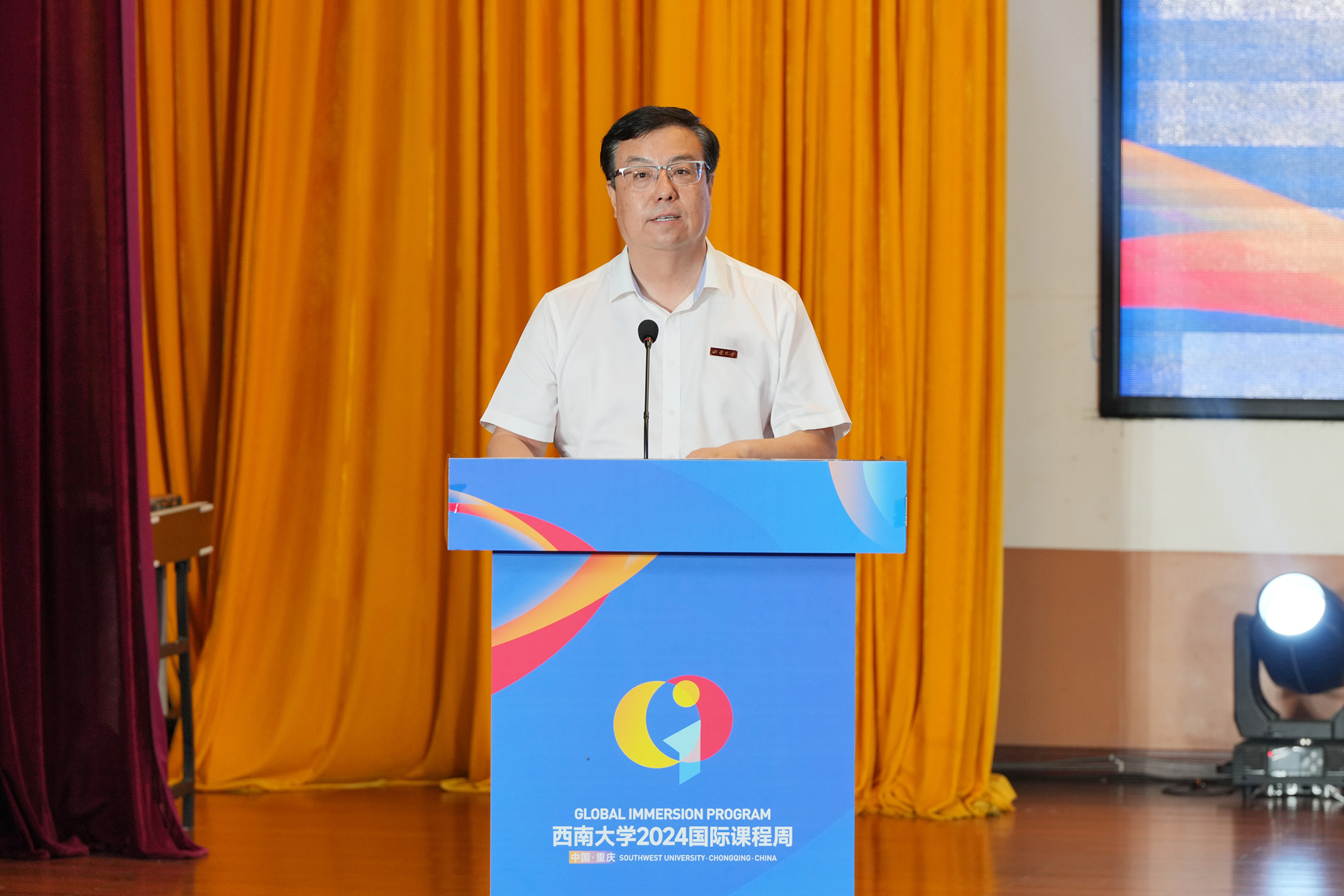 7月7日,学校2024国际课程周开幕式在音乐演奏厅举行。校长王进军、党委副书记黄杰、副校长周光明,学校教育对外开放领导小组成员单位主要负责人、各教学单位党政主要负责人出席开幕式。来自牛津大学、加州大学洛杉矶分校、密苏里州立大学、萨塞克斯大学、图卢兹第三大学、根特大学、帕特雷大学等23个国家43所知名高校和国际友校的60名高水平外籍专家与中方共课教师及部分学生代表参加。
