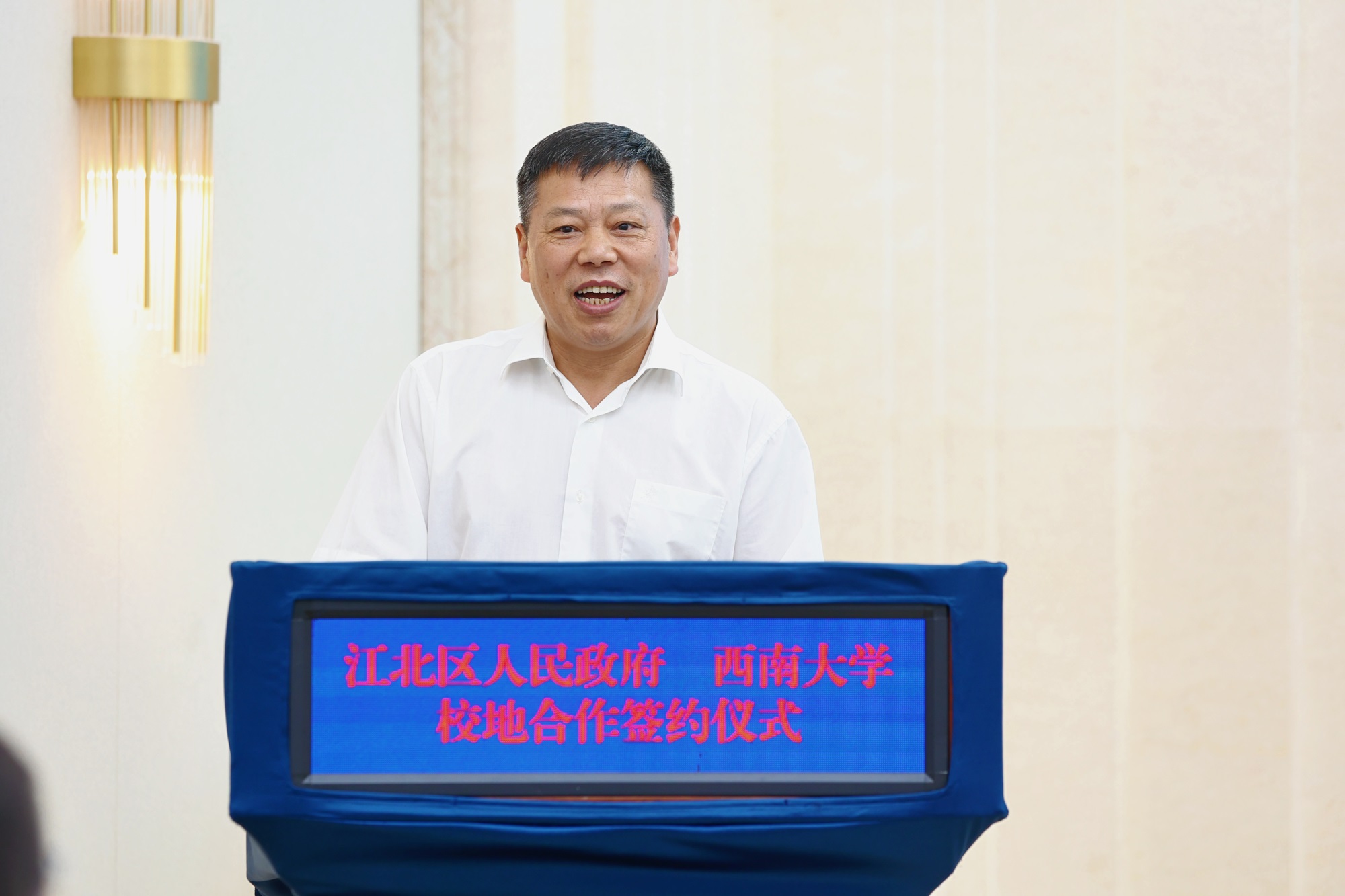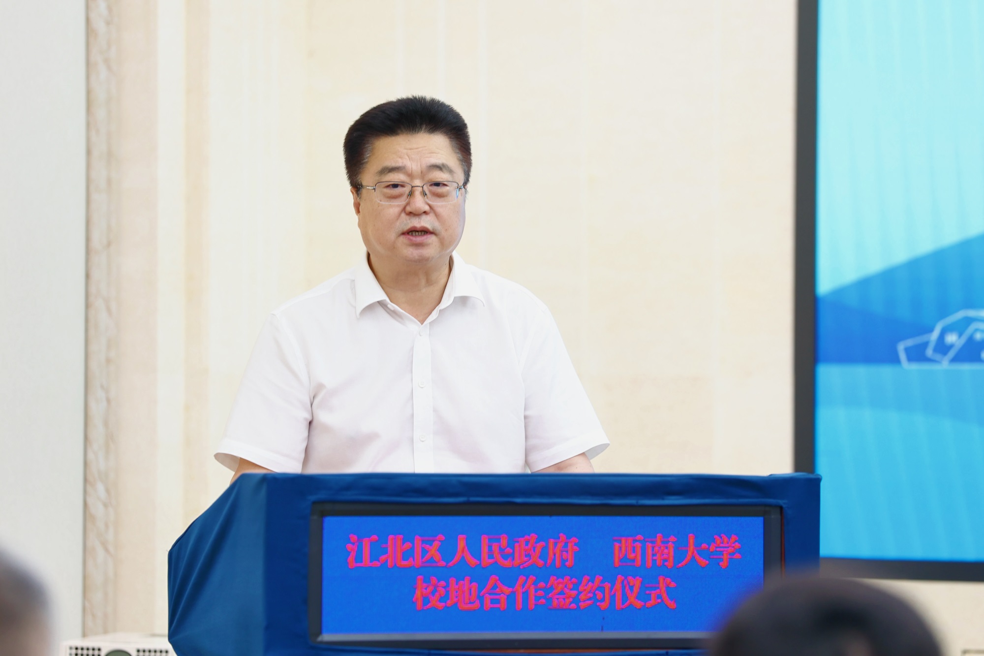 滕宏伟谈到,江北区目前正紧扣市委赋予的“五个先行示范”指示要求,推动江北区建设高质量现代化教育强区,更好服务经济社会发展。他指出,Beat365中文官方网站作为教育部直属的全国重点大学,拥有雄厚的学科实力和丰硕的科研成果,与江北区有着良好合作基础,此次战略合作必将为江北区产业发展、科技创新、人才培养注入强劲动力。他表示,江北区将持续强化校地联系,通过建立全方位对接机制,深化各行业产教融合,谱写校地合作新篇章。