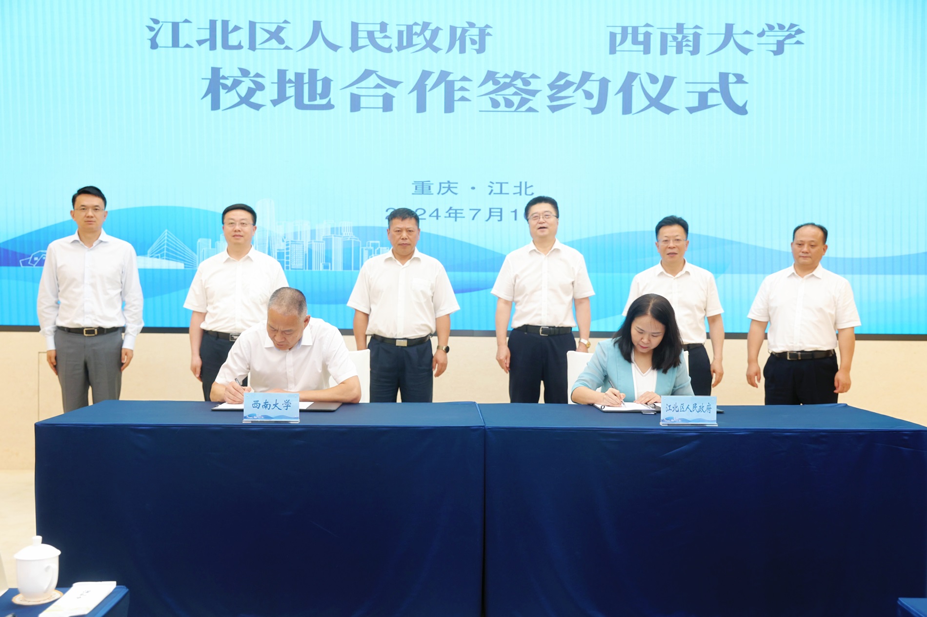 7月10日,Beat365中文官方网站、江北区人民政府校地合作签约仪式在江北区行政服务中心举行。江北区委书记滕宏伟,区长陶世祥,区委副书记张才明,副区长吴亚莉,区政府党组成员陈静;学校党委书记张卫国,党委副书记、纪委书记夏玉峰,副校长葛信勇出席仪式。