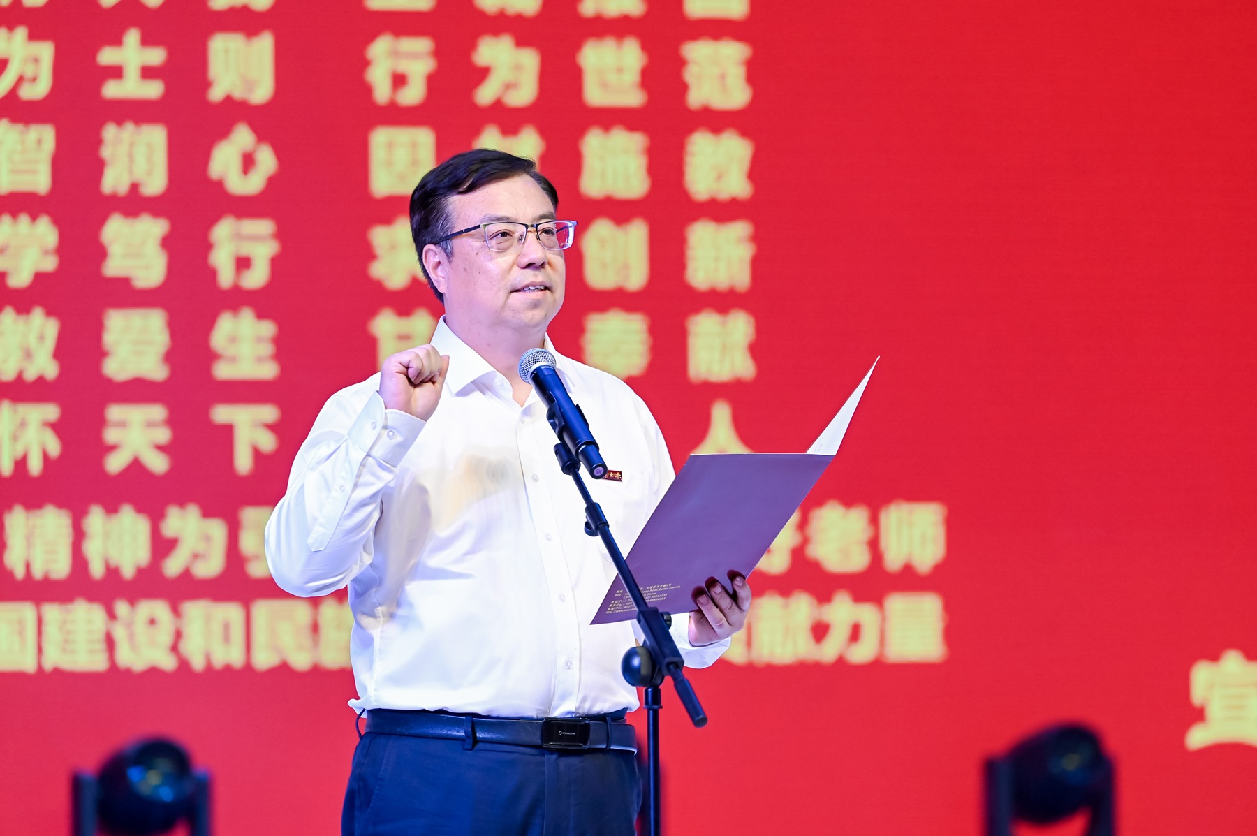 党委书记张卫国在大会上发表致辞,向全体教职员工致以节日问候和祝福,勉励广大教师坚定心有大我、至诚报国的理想信念,用真情做有情怀的好老师;提升敬业立学、与时俱进的育人本领,用真心做有水平的大先生;常怀俯身耕耘、甘于奉献的仁爱之心,用真爱做有温度的引路人。希望广大教师更加紧密地团结在以习近平同志为核心的党中央周围,学习贯彻全国教育大会精神,大力弘扬教育家精神,不断谱写学校高质量发展新篇章,为强国建设、民族复兴作出新的更大贡献。