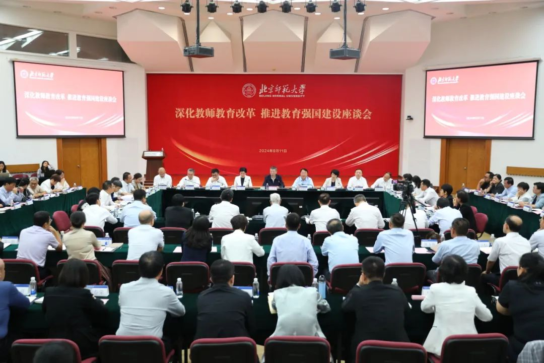 9月11日,六所部属师范大学在北京联合召开“深化教师教育改革 推进教育强国建设”座谈会,共同探讨新时代新征程上优化教师教育发展的新路径和加强教师队伍建设的新思路新举措。教育部党组成员、副部长、总督学王嘉毅出席座谈会并讲话,六所部属师范大学相关负责人在会上作主题发言,教育部教师工作司司长俞伟跃、副司长黄小华及相关处室负责人等参加会议,北京师范大学校长于吉红主持会议。学校副校长周光明参加座谈会并在会上交流发言。