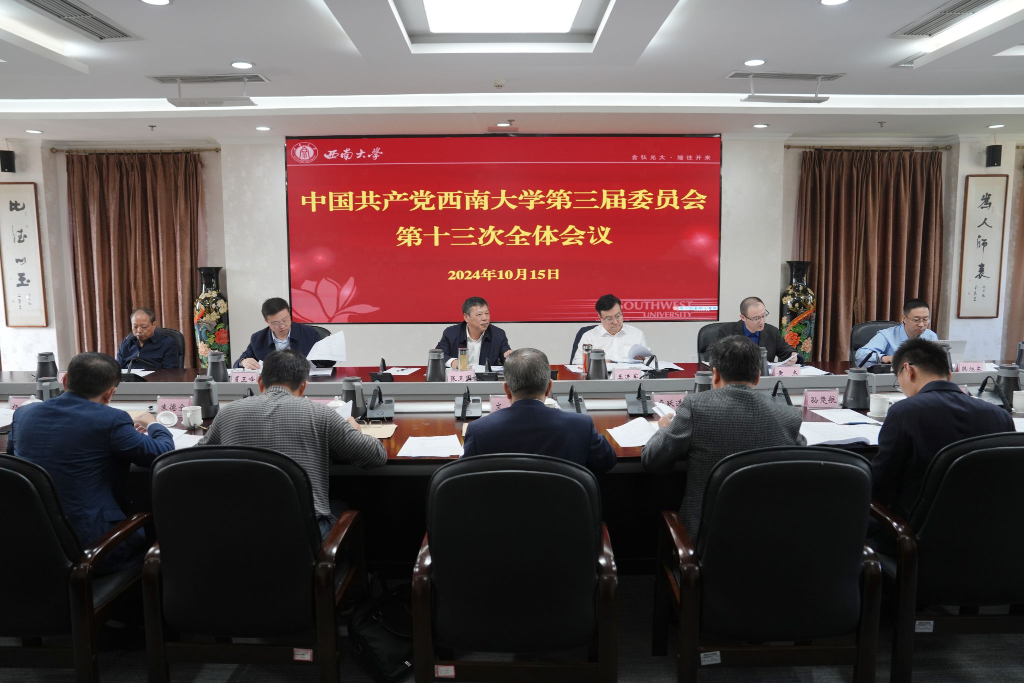 中共Beat365中文官方网站第三届委员会第十三次全体会议于10月15日上午在行署楼A栋第五会议室召开,全体在校校领导、党委委员参加会议,会议由党委书记张卫国主持。会议听取并审议通过了学校《深入贯彻落实党的二十届三中全会精神进一步深化综合改革工作方案》和巡视整改落实方案。