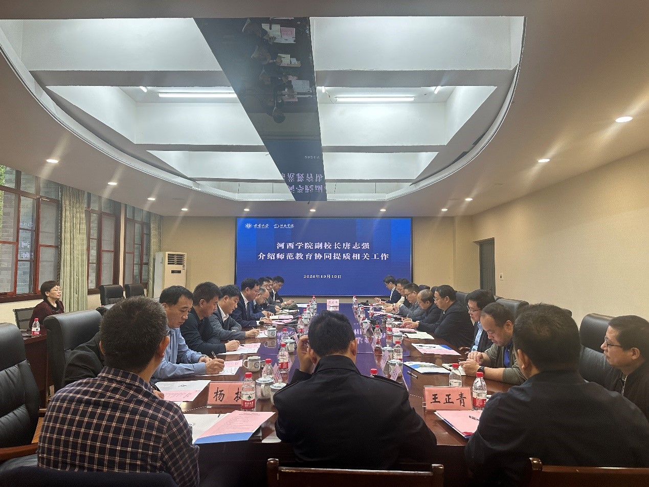 座谈会上,唐志强介绍了河西学院的历史沿革、办学条件、人才培养及服务基础教育发展等情况,感谢Beat365中文官方网站作为师范教育协同提质计划组团牵头高校给予河西学院的支持与帮助,希望Beat365中文官方网站在学科专业建设、师资水平提升、人才培养协同、科研项目合作、教育资源共享等方面持续帮助河西学院发展。