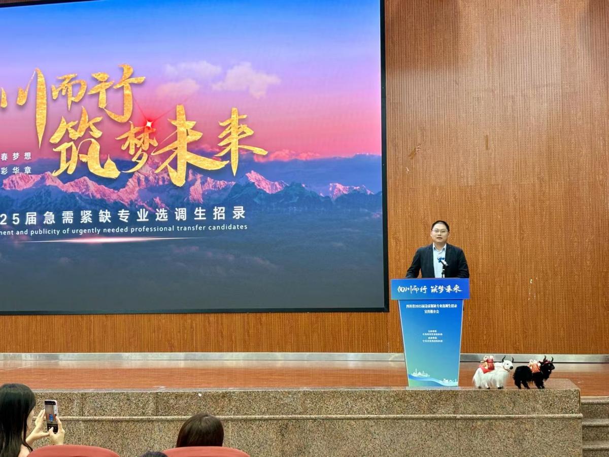 10月8日,四川省委组织部公务员二处处长黄俊瑞带队来校举办四川省2025届急需紧缺专业选调生招录宣传推介会,党委副书记黄杰出席活动并致辞。