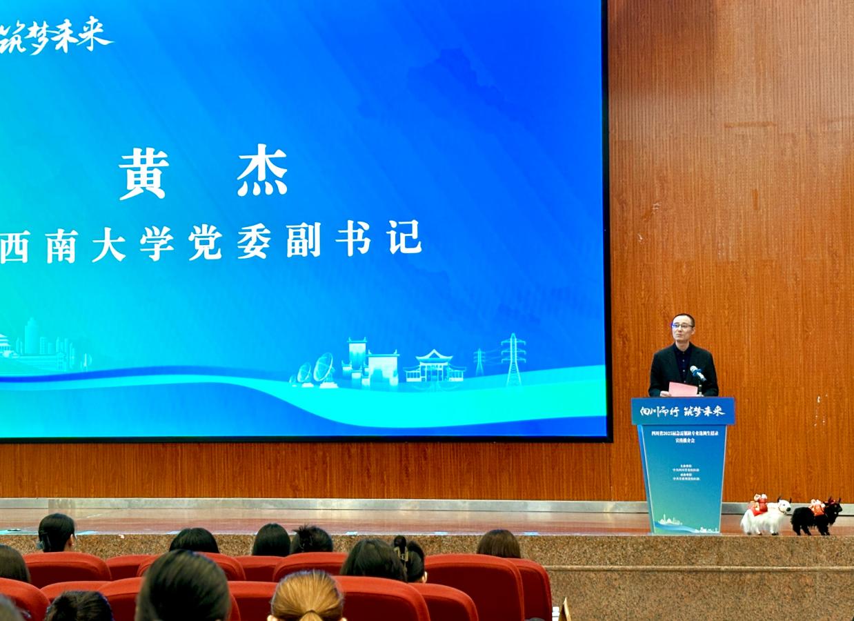 黄杰在致辞中表示,学校一直以来高度重视选调生工作,积极为国家和地方输送优秀人才,期待通过此次宣讲推介会进一步加强与四川省的合作,共同推动更多优秀人才到四川建功立业,为四川经济社会发展贡献力量。